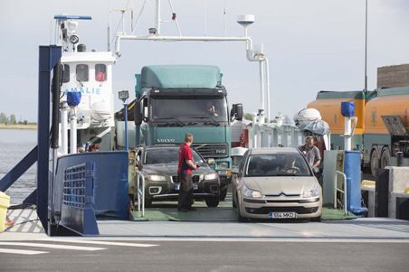 Munalaidista Kihnuun menevällä lautalle mahtuu vain 10 autoa. Paikka kannattaa varata ajoissa. Anette Vetik odotteli isäänsä Munalaidin satamassa Papa Lucas -koiransa kanssa. Papa Lucas tuli sittemmin monta kertaa tiellä vastaan.