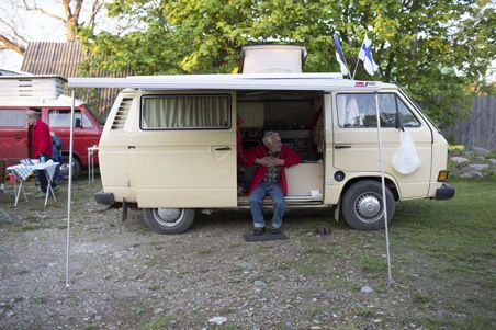 – Minulla on kuusi autoa. On vuoden -36 Volvo-kuorma-auto, Saab -70, Volkkari transporter Typ 2 -73, automaattivaihteinen kupla vuodelta -68 ja tämä kuvassa oleva Volkkari westfalen -70. Lisäksi minulla on -96 Toyota Yaris, entinen postiauto. Kaikki ovat rekisterissä, suurin osa museorekisterissä. Säilytän niitä monessa paikassa, esimerkiksi vanhassa kanalassa Liedossa.
