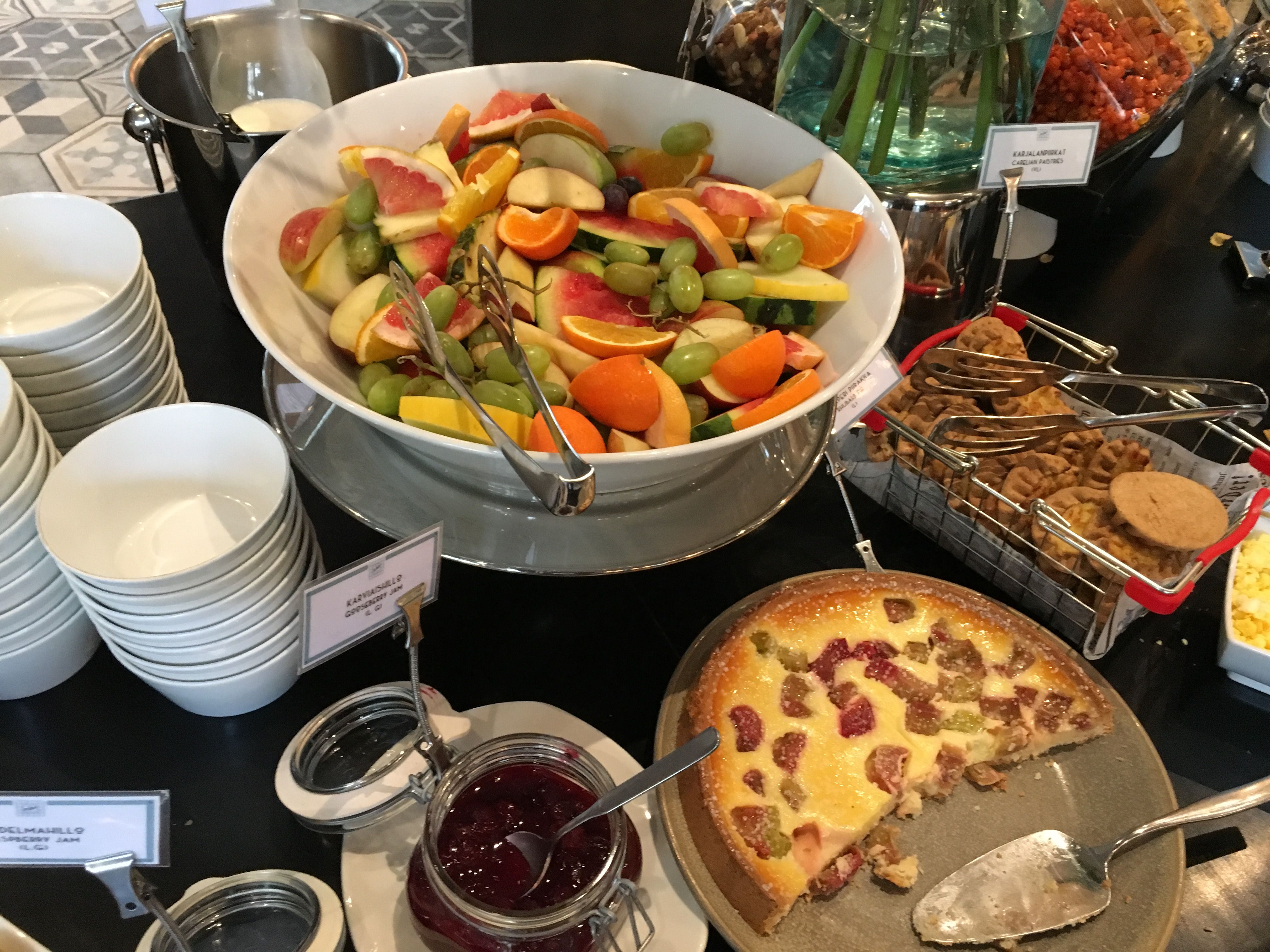 Aamiainen: Ei puutteita. Lämpimiä ruokia kaipaaville on pekonia, munakokkelia, keitettyjä munia, bratwurstia, papumuhennosta, pannukakkuja. Leivät ovat rapeita, kahvi riittävän vahvaa ja hyvää. Gluteeniton valikoima on masentavan pahvinen ja muovinen.