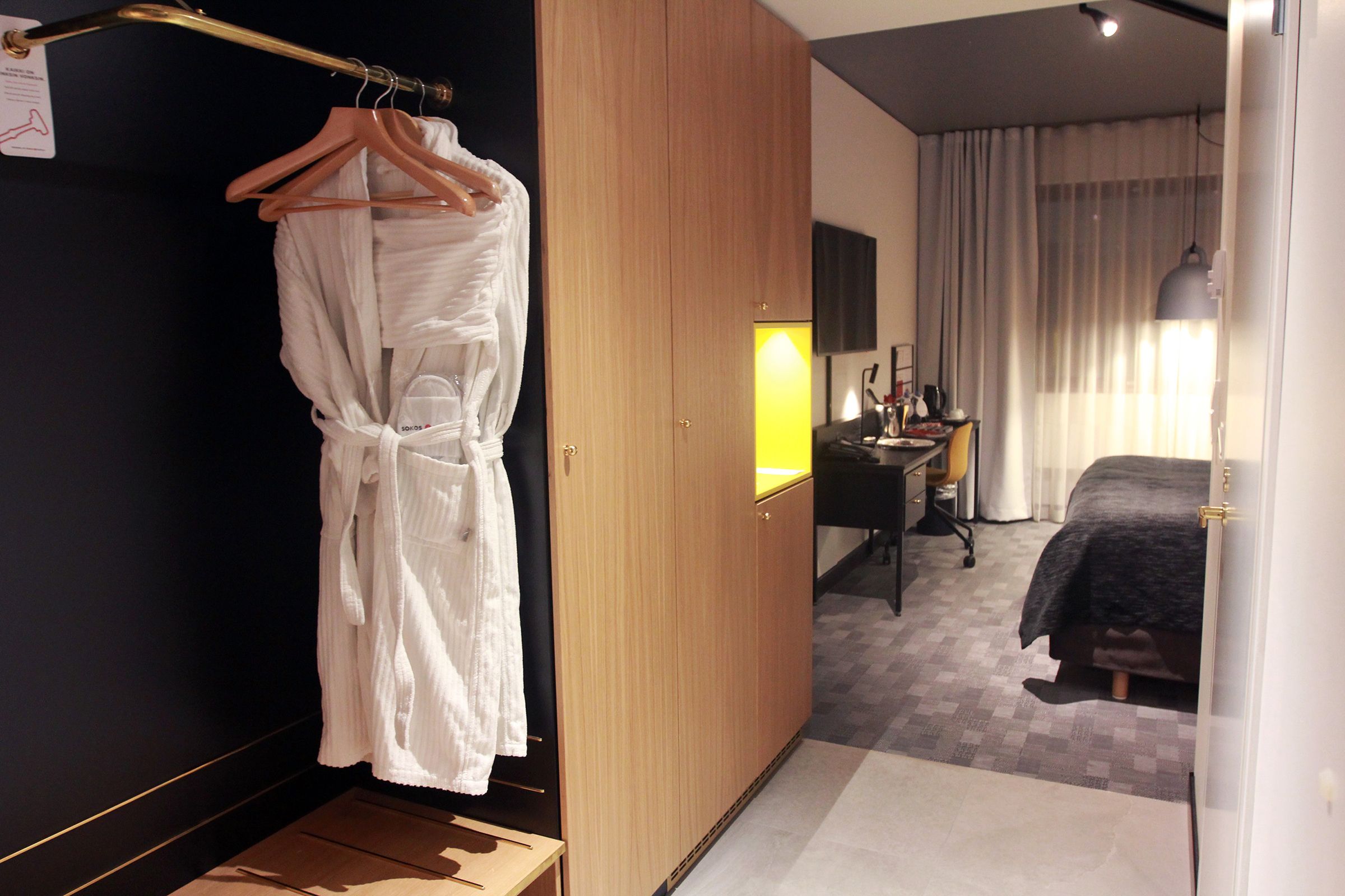 Varustelu on tämän päivän vaatimusten mukainen. Minibaari tarjoaa antimiaan, tallelokero on kunnon kokoinen, silityslauta löytyy kaapista ja pöydällä odottaa Nespresso-kahvikone. Kylpyhuoneesta löytyvät sadesuihku, kylpytakit ja Aveda-hygieniatuotteet. Ilmanvaihto on harvinaisen hiljainen.