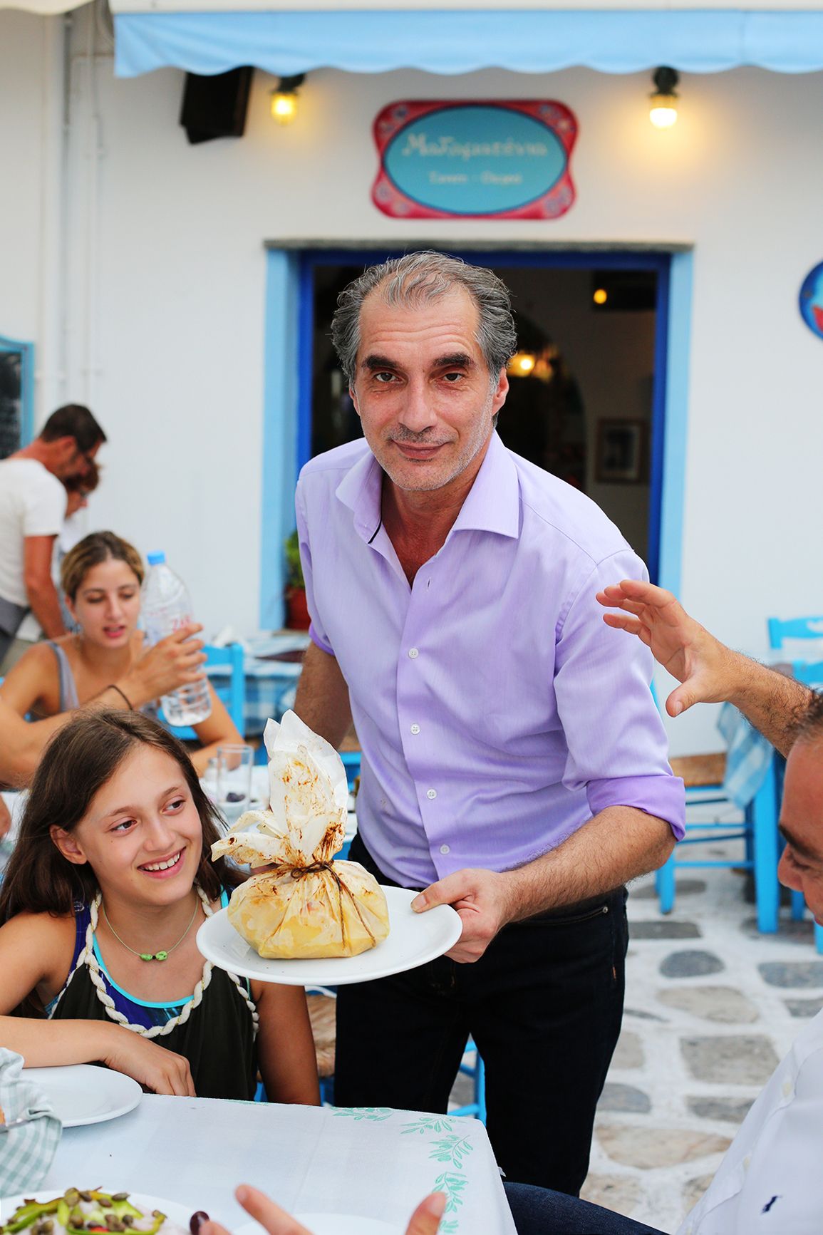 – Mieheni Pavlosin kesätaverna levittäytyy pienelle kujalle ja Malamatenia-aukiolle kahden kirkon väliin. Nuorempi tytär auttaa tavernan puuhissa aamuisin, vanhempi on osan kesää ensimmäisessä kesätyössään tarjoilijana, Milka toteaa.