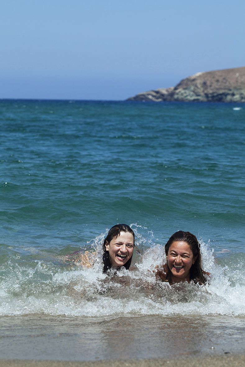 – Yleensä uimme Agios Fokaksella, Stavroksella tai Kolibithrassa. Käymme uimassa ja sukeltelemassa aamulla, iltapäivällä tai illalla. Keskipäivän polttavaa aurinkoa yritämme välttää.