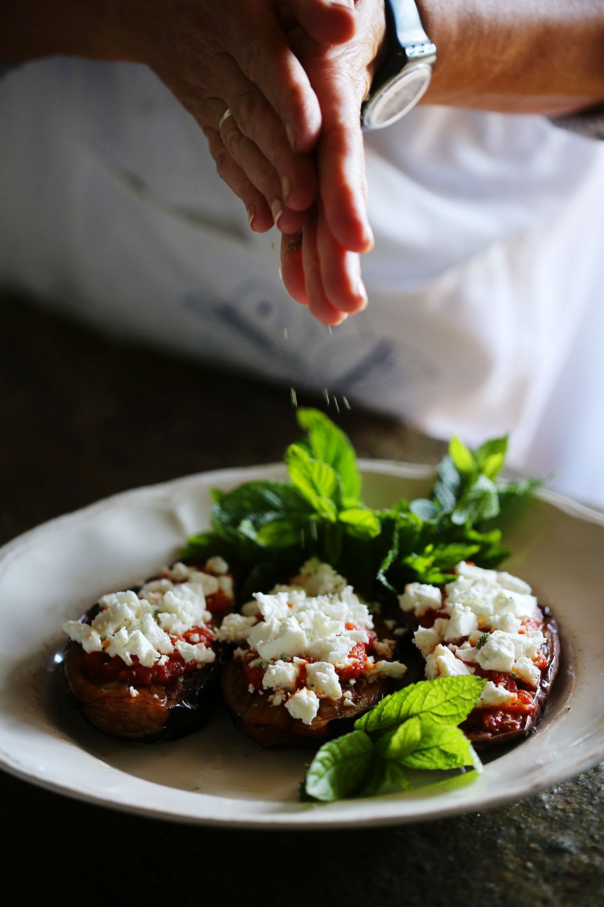 Malamatenia-tavernan Pavlos Koudounis tuo pöytään pitkään muhinutta rosvopaistia, Kleftikoa.