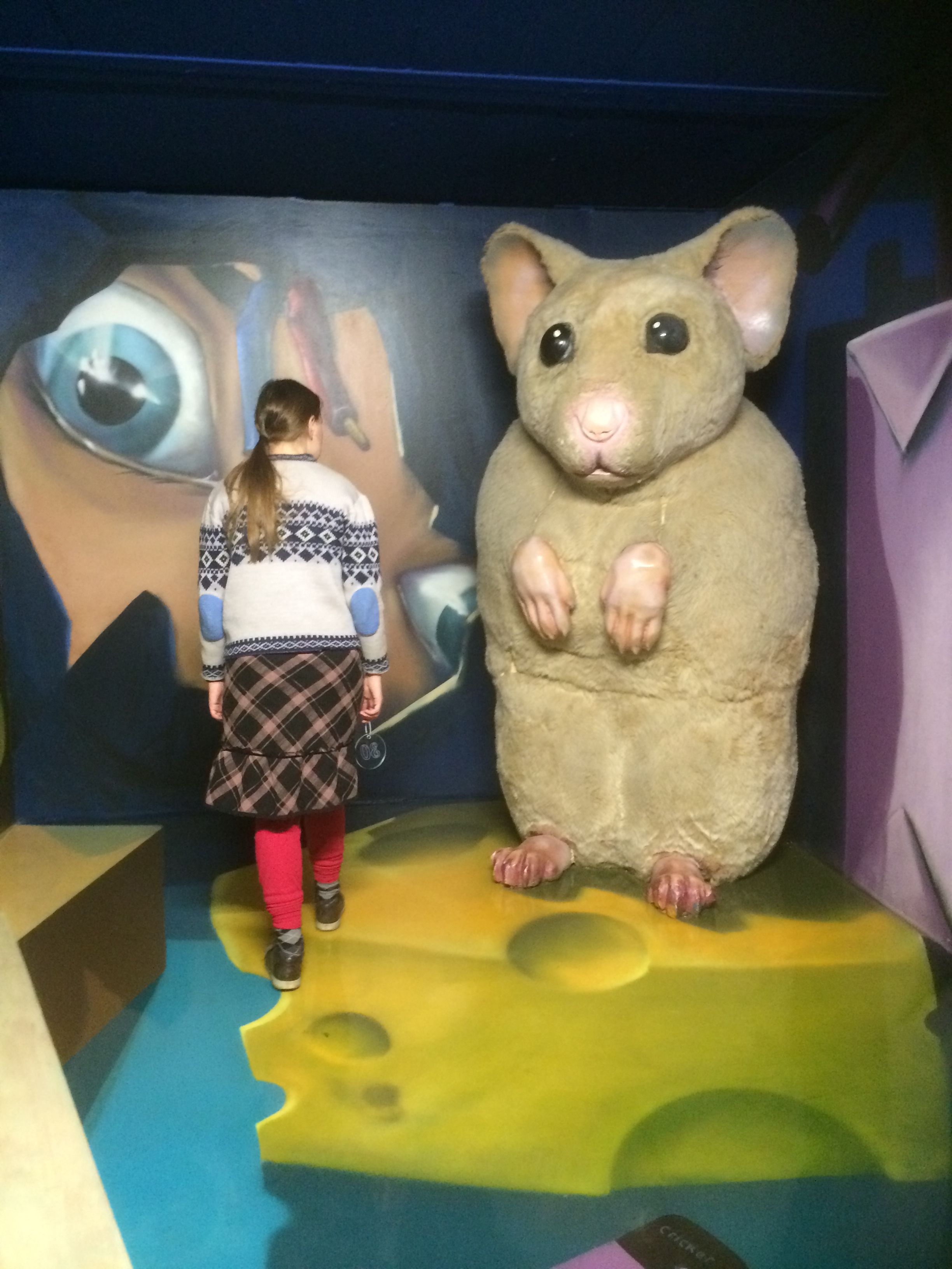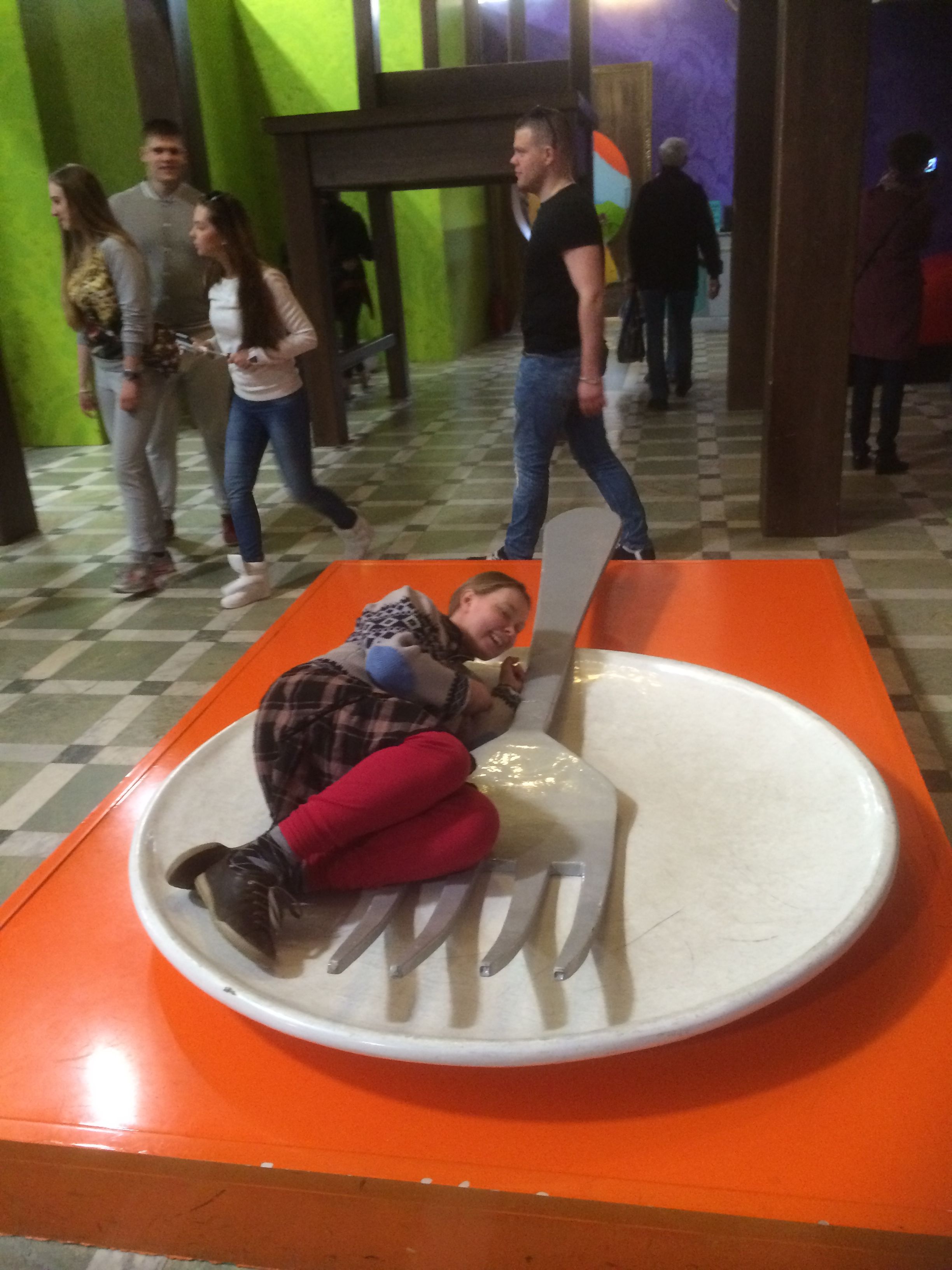Jättiläismaailman vieressä on muitakin kohteita, muun muassa illuusiomuseo, perhospuutarha ja lasilabyrintti. Sisäänpääsy kaikkiin maksaa 1000 ruplaa eli 13,40 euroa. Henkilökunta ottaa asiakkaista kuvan Ruotsin laivan tyyliin, ja siitä tehdään hetkessä pieni jääkaappimagneetti. Hinta oli 2,70 euroa (200 ruplaa).