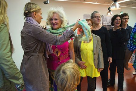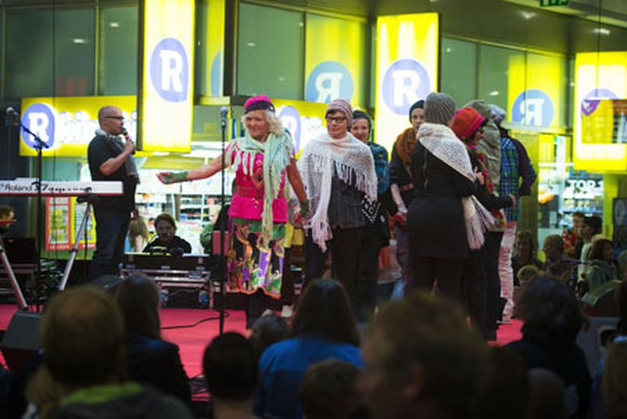 Muotinäytökset kauppakeskuksessa jatkuvat vielä kahden päivän ajan. Päiväkeskuksen rouvat kertovat olevansa mukana puuhassa jos toisessakin, muotinäytökseen osa tuli suoraan päivätansseista ja osa teatteriryhmän harjoituksista.
