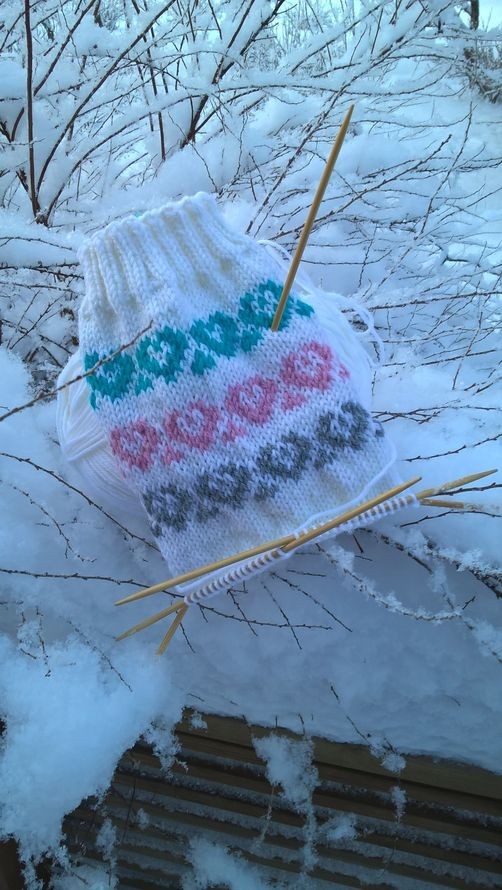 + Keskeneräinen sukka on oikeastaan dynaamisemman näköinen kuvassa kuin valmis sukka olisi.