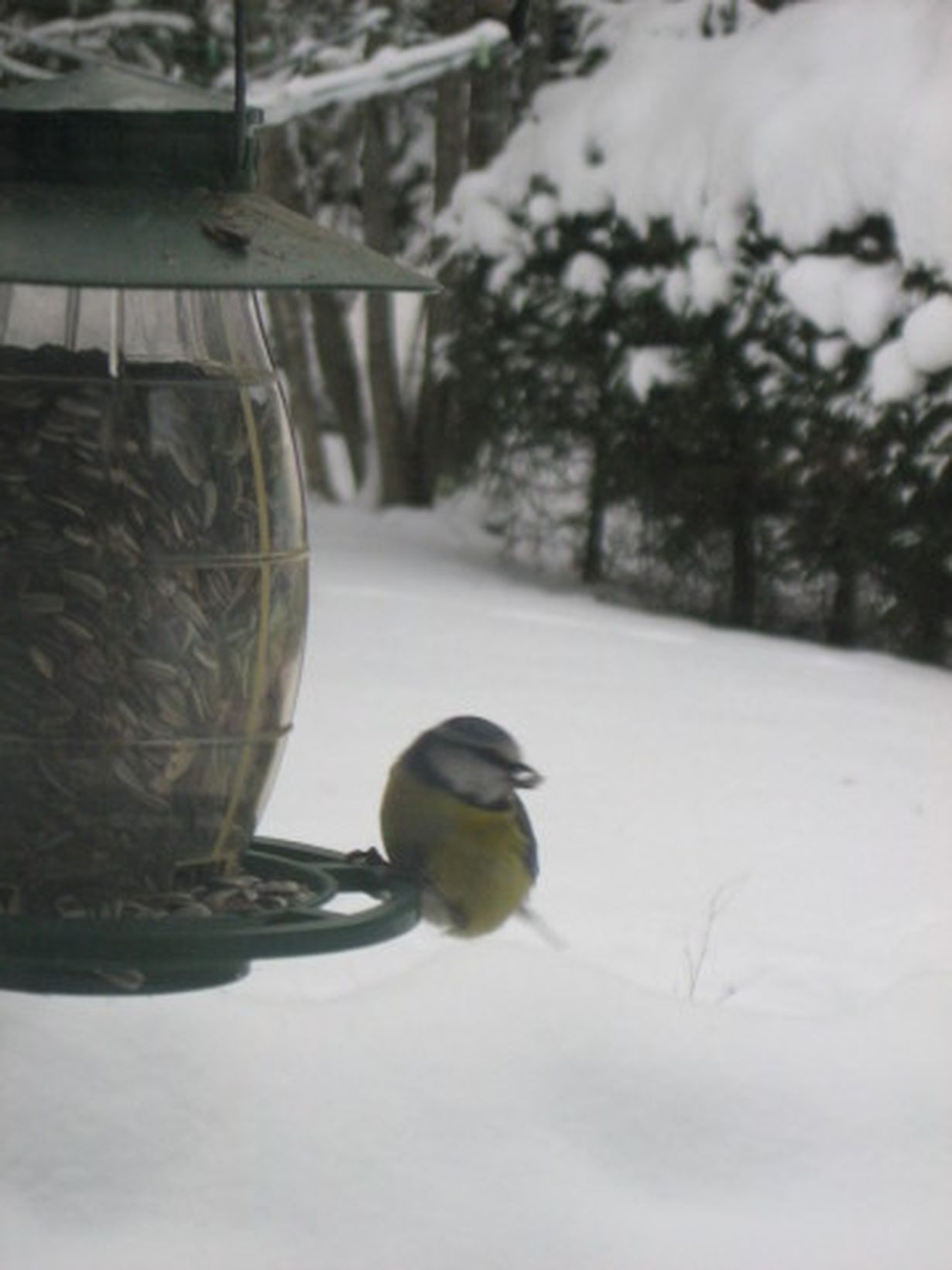 Lintulauta Aamupalalla 9.2.2012 klo 15:35 Lintulaudallamme näkyy kuusi-hömö-töyhtö-sini ja talitiaisia ja punatulkkuja