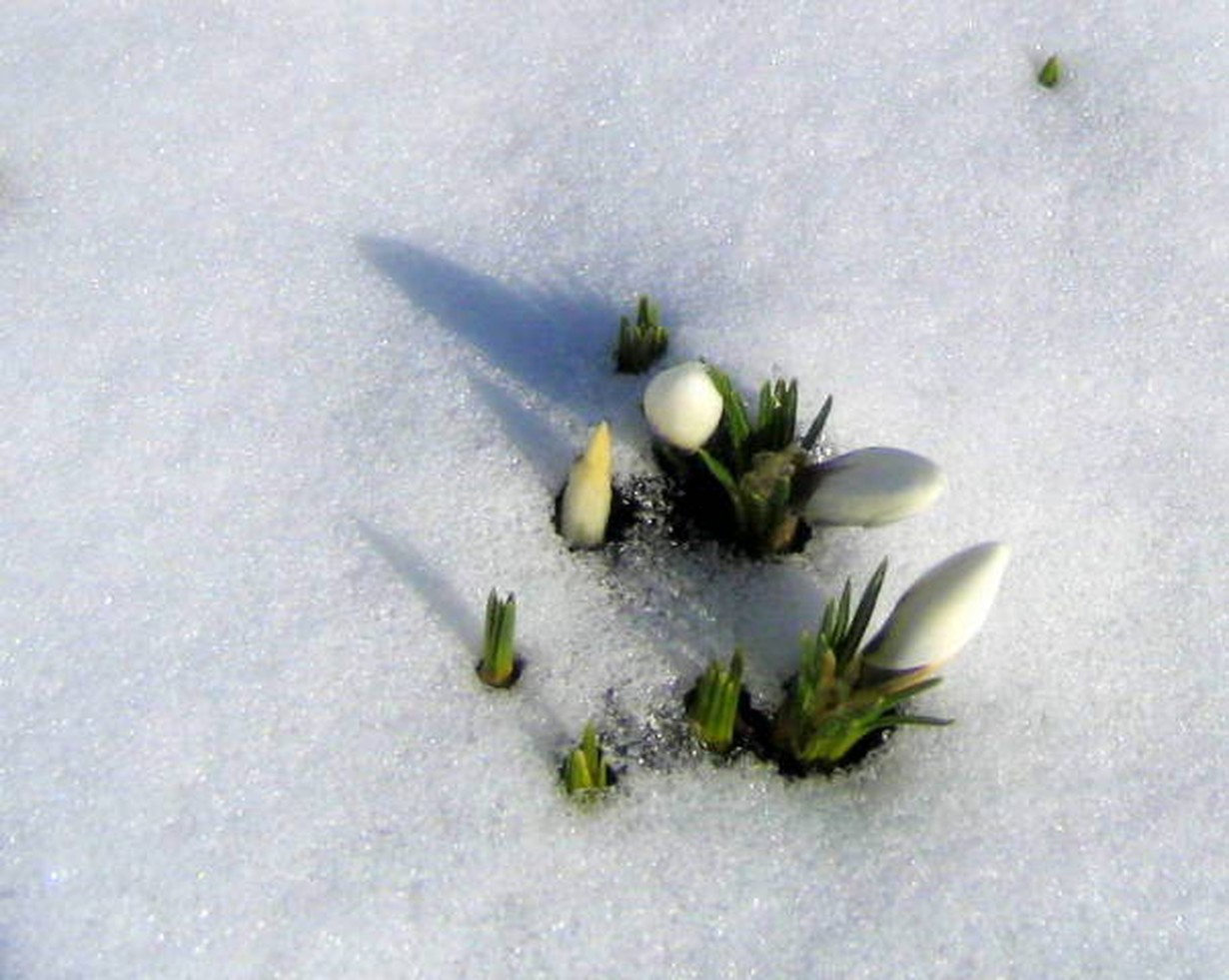 Miltä näyttää kotiseutusi kaunis kevät? Ensimmäiset kukat 25.3.2012 klo 16:33 Krookuksen nuput nousemassa lumen alta. Kuvattu tänään 25.3. 2012