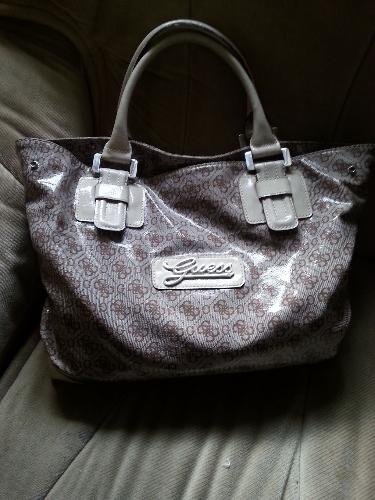 Juuri sopivan kokoinen laukku arkeen ja kouluhommiin, sekä pitkän päivän jälkeen kuntosalille! Guess:in isokokoinen kaunis laukku ja vielä kirpputorilöytönä edukkaasti. Käyttö on ollut ahkeraa jo alkuun.
