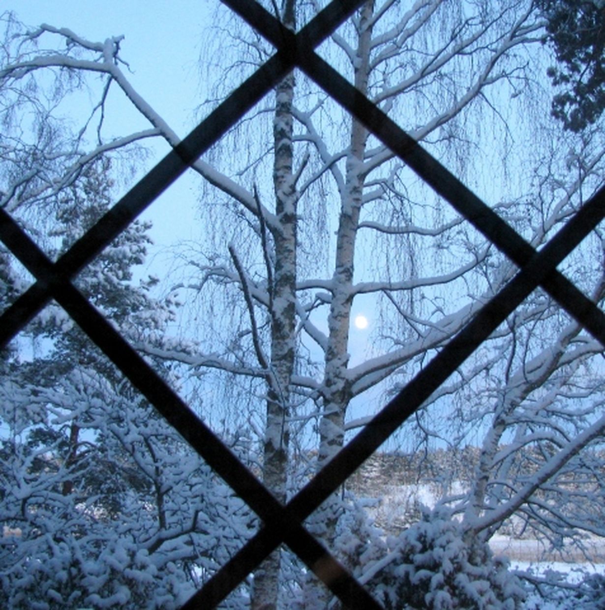 Joulukuinen näkymä ikkunasta - pian ensilumen jälkeen.