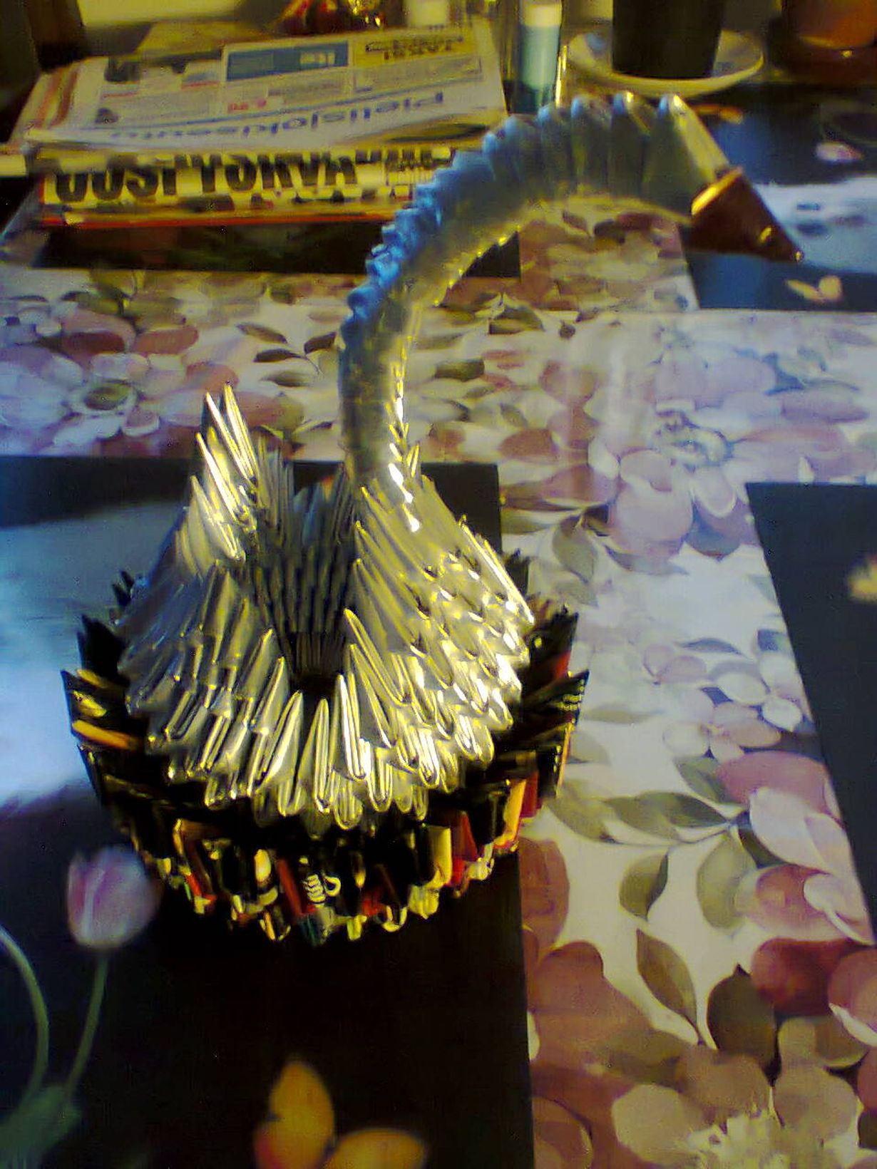 Kahvipaketeista tehty joutsen
