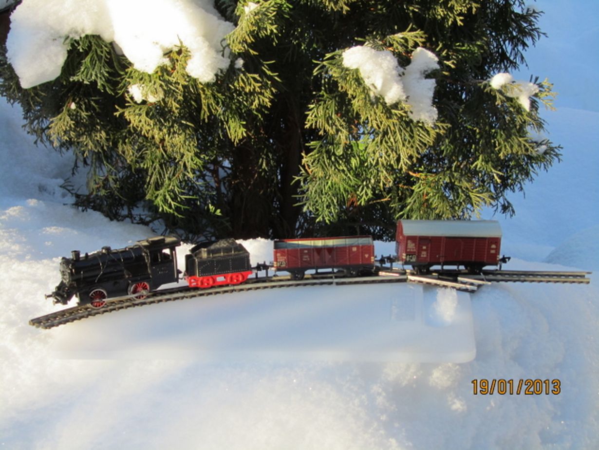 Junarata saatu 5-vuotiaana joulupukilta. Omistaja on nyt 65-vuotias. Juna kulkee edelleen, omistaja myös. Juna on Fleischmann-merkkinen, made in U.S.Zone Geramany, vuosi 1954.