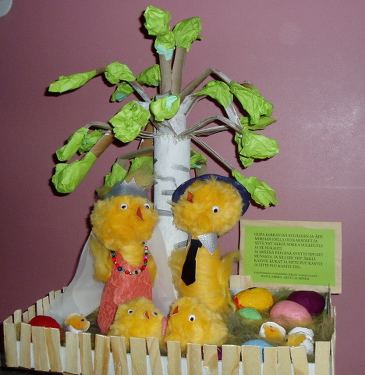 Pienten lasten yhteinen työnäyte, kuinka kanaperhe viettää pääsiäisen aikaan häitä.