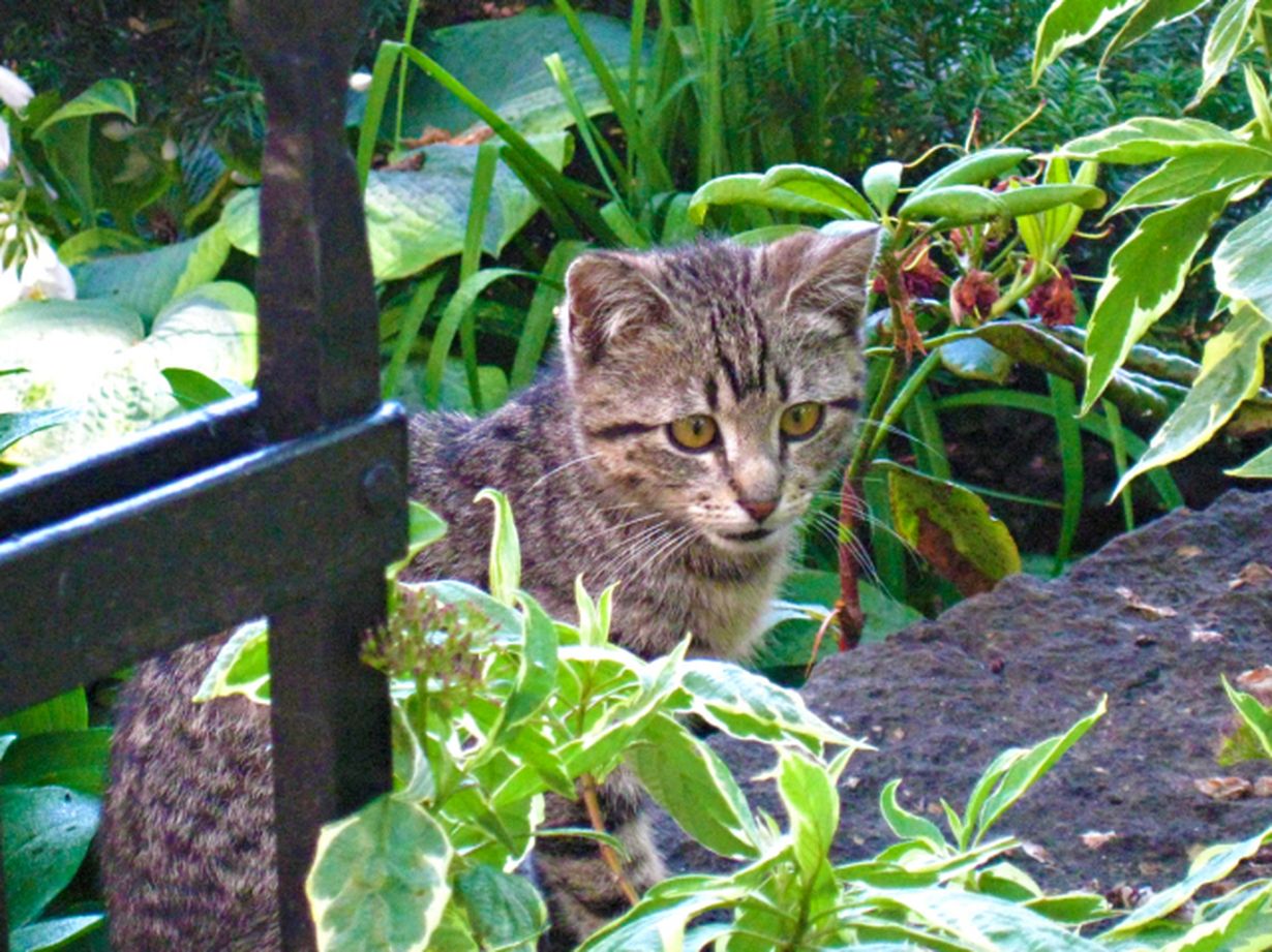 Pelokas kissanpoika Tallinnalaisessa puutarhassa
