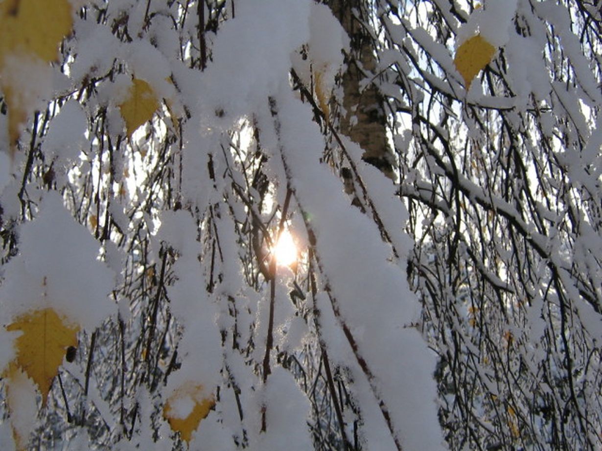 Ensilumi koivu 29.11.2011 klo 8:06 pari vuotta sitten otettu. lumi yllätti kesken aurinkoista syksyä.