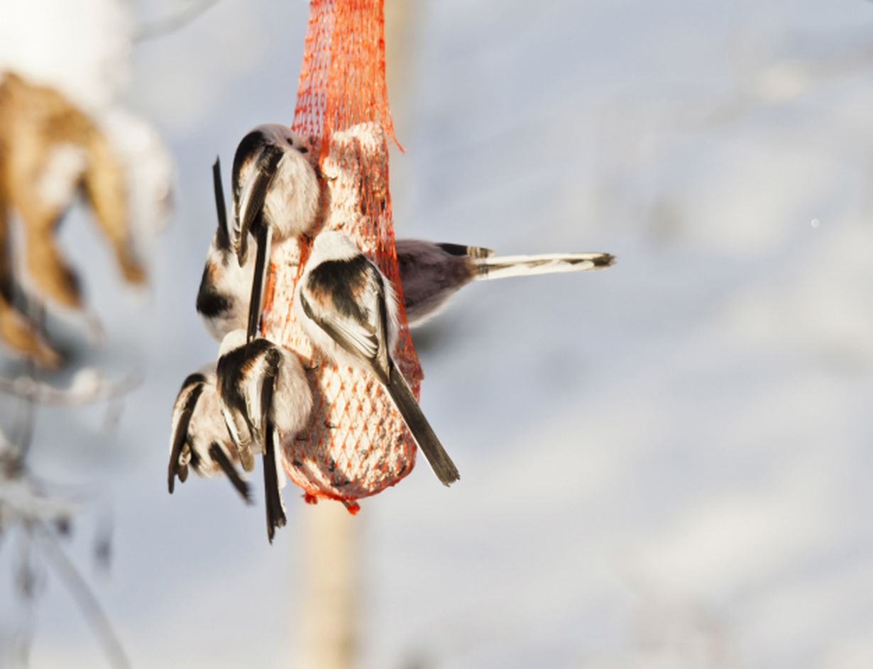 Pienet ja suloiset pyrstötiaiset vierailevat aina silloin tällöin ruokinnalla! Yht´äkkiä niitä on joka oksalla ja saman tien ne taas jatkavat matkaansa!