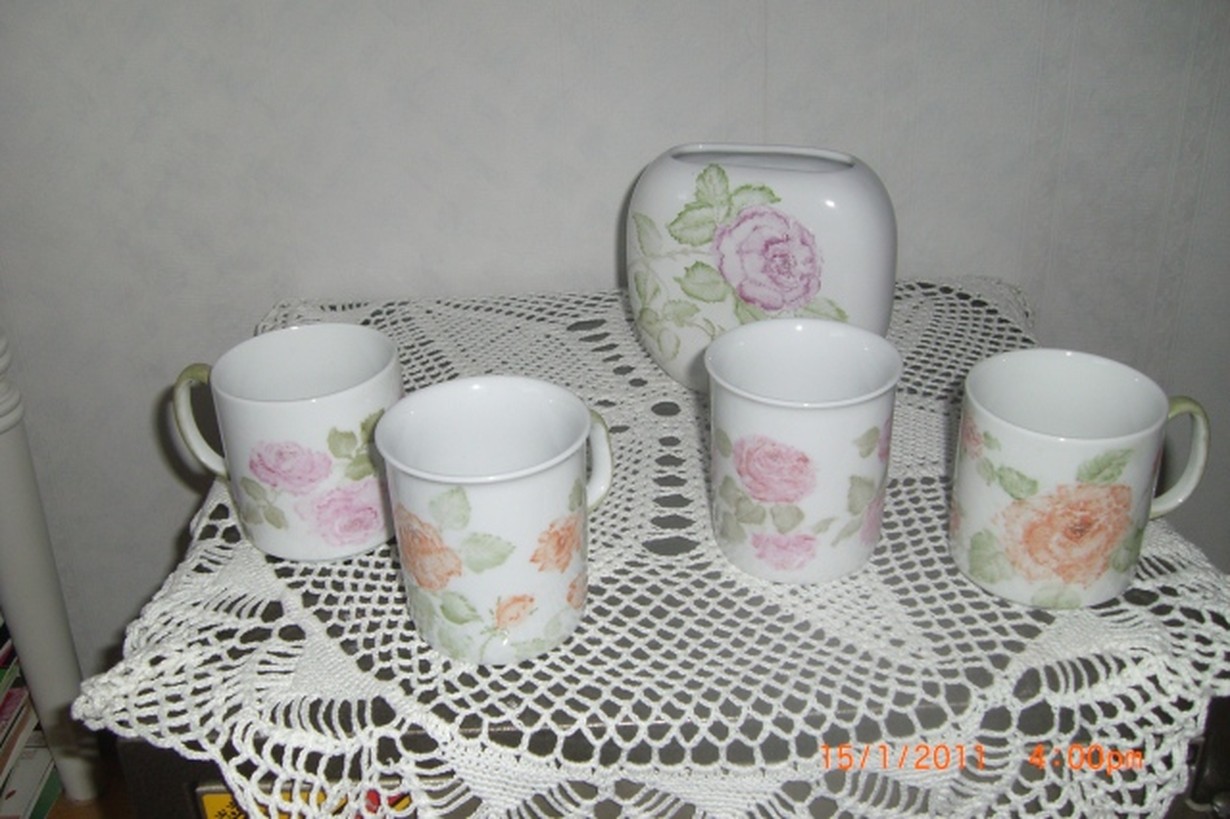 Lukijoiden kuvat: Wau, mitä käsitöitä! kotona maalattuja mukeja ja maljakko 23.12.2011 klo 21:32 OLEN KOTIMAALARI JA RUUSUT KIEHTOVAT KOVASTI, TEEN ITSENI ILOKSI JA ANNAN NIITÄ MYÖS YSTÄVILLENI
