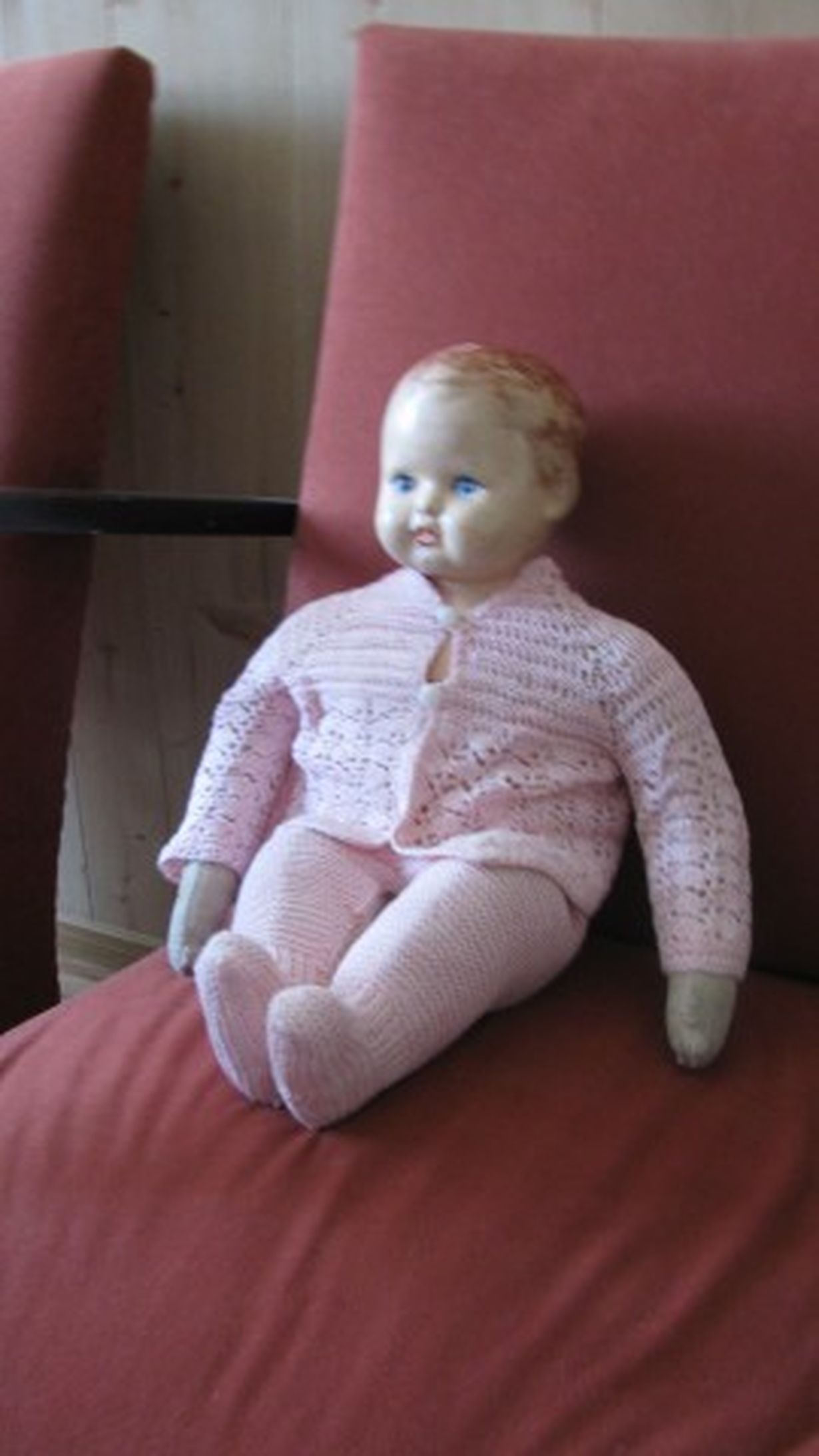 Olen ommellut nuken kansakoulun seitsemännellä luokalla,Istunmäen koulussa lukuvuonna1961-62.Vietimme koululla myöskin nimenantojuhlan ja koulumme johtajaopettaja oli kummina nukkevauvoillemme. Minun nukkeni nimeksi tuli Ulla-Maija.Silloin olin jo niin iso etten enää leikkinyt mutta sängyn päällä Ulla sai olla maskottina.Nukke seurasi minua koko nuoruuteni kun olin töissä ja opiskelemassa ja vaihtelin paikkakuntaa.Sitten sain 3 lasta ja he ovat jokainen leikkineet Ullalla.Myöhemmin olin 12 vuotta perhepäivähoitajana ja kaikki hoitamani lapset ovat hoivanneet ja hellineet nukkeani.Nyt meillä on 7 lastenlasta ja sama Ulla on yhä mukana jokapäiväisessä touhussa.Kankaasta tehdyt jäsenet ovat kuluneet ja likaantuneet.Osa jäsenistä on irronnutkin ja ommeltu uudelleen kiinni.Vaatteet ovat alkuperäiset,puuvillalangasta neulotut.Niissä on jo ajan patinaa,lanka on haurastunu teikä oikein kestä pienten leikkijöiden käsittelyä.
