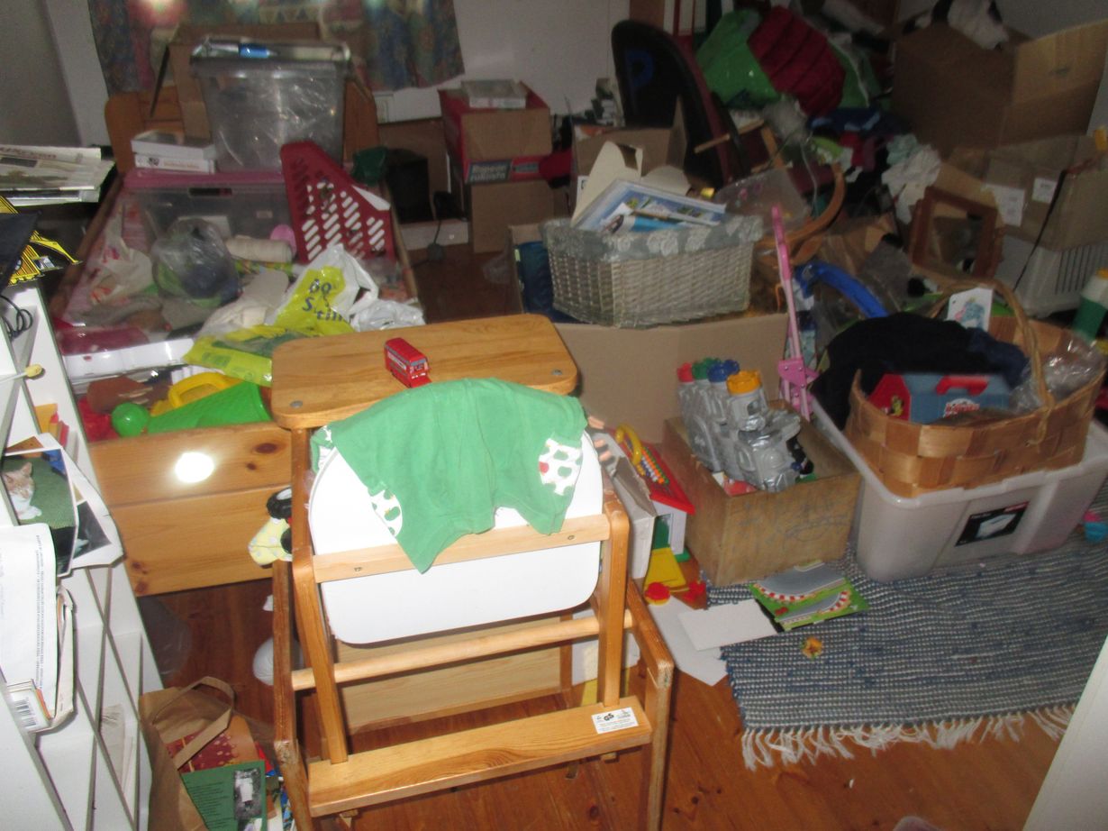 Aikuiset lapsemme ovat muuttojensa yhteydessä saaneet aikaan tämän kaaoksen. Kenelläkään heistä ei ole muka aikaa järjestää tätä sotkupesää.