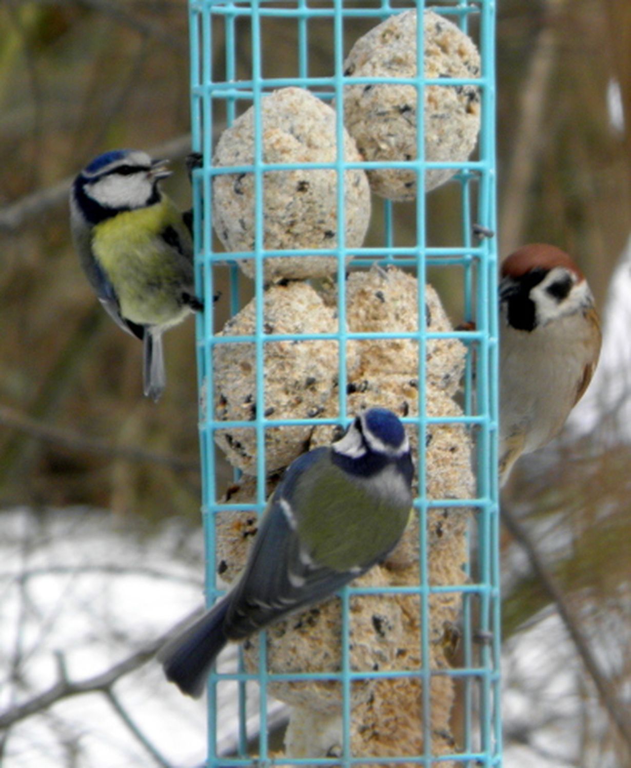 Lintulauta Lintujen vuoro 21.3.2012 klo 16:59 Oravan lähdettyä tulivat sinitiaiset ja pikkuvarpunen aterialle.
