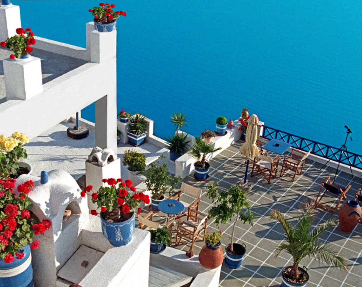 lomamuisto Santorinistä