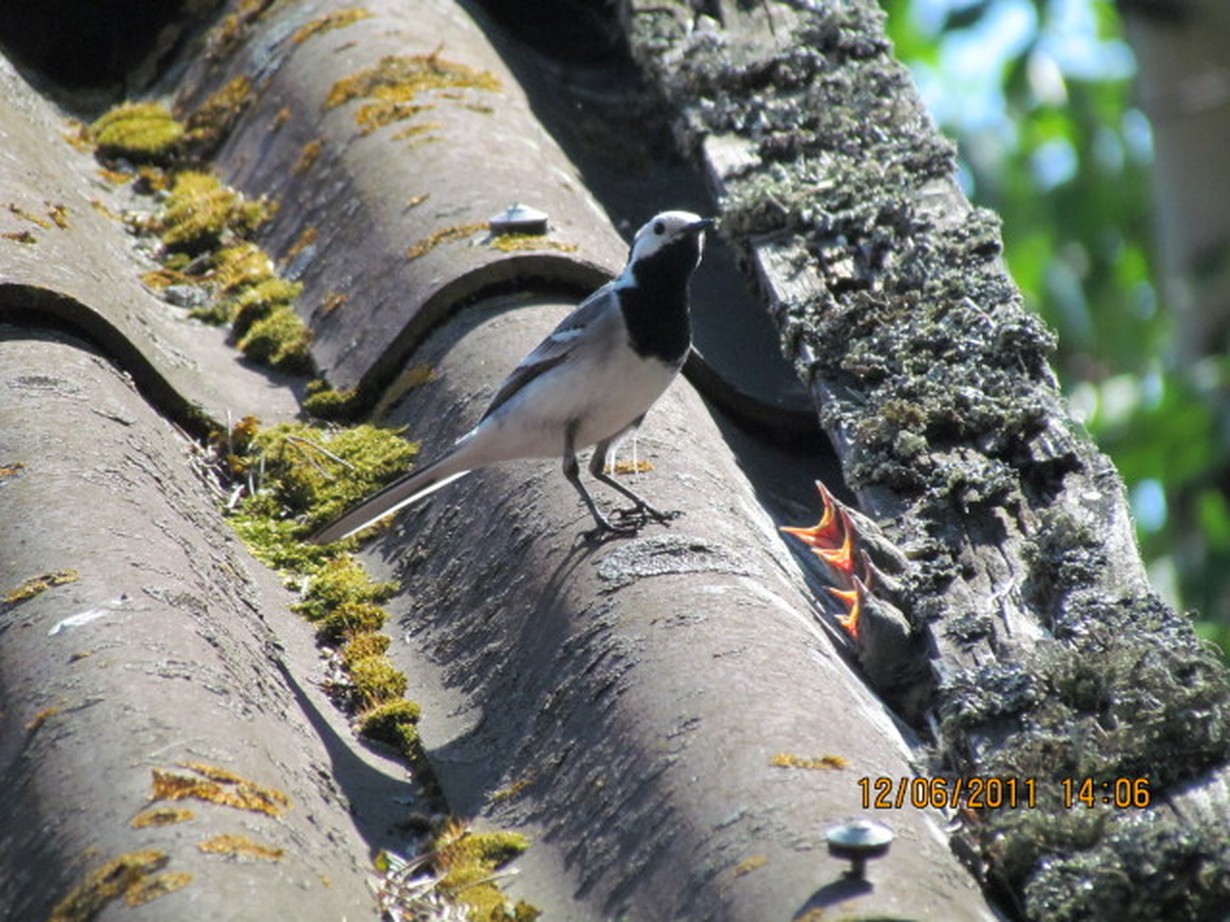 Västäräkki oli tehnyt pesänsä katon harjalaudan alle, jossa oli viisi poikasta. Yksi putosi maahan n. 4-5 metriä ja säilyi hengissä ja terveenä. Se huuteli emoa, joka "neuvoi" sitä tulemaan metsän reunaan ja ruokki sitä siellä. Muut neljä saivat aterian katolle.