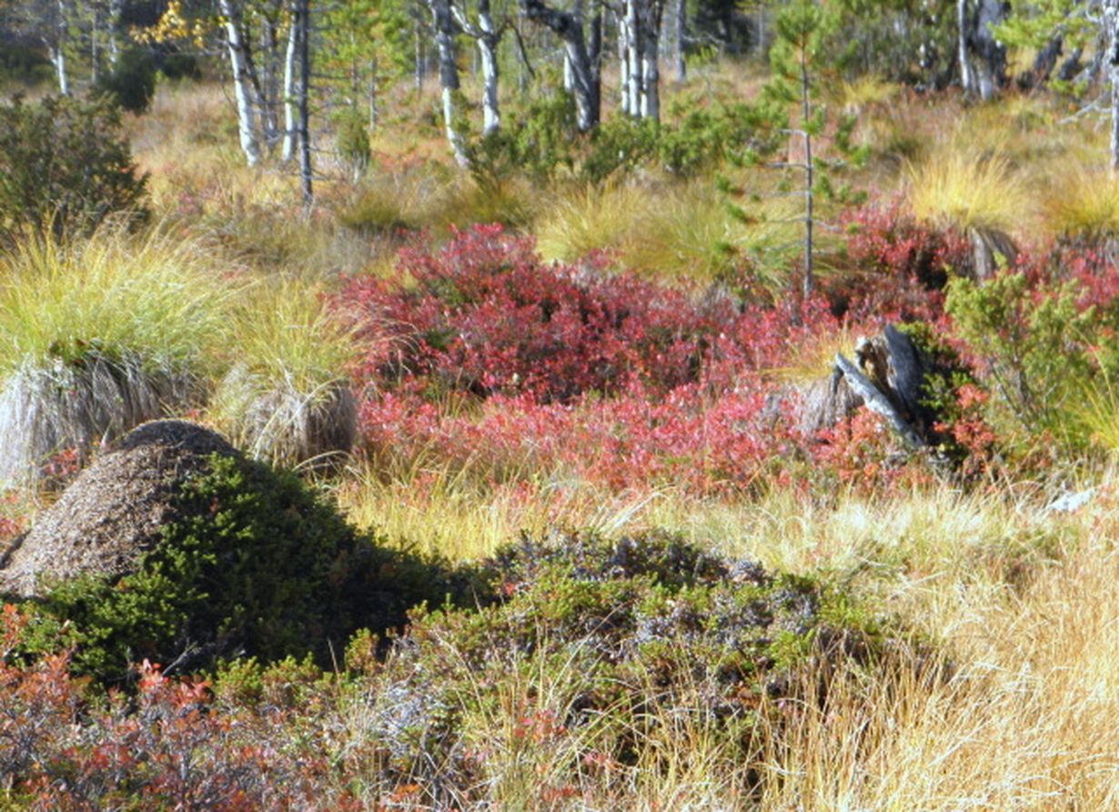 Punaiset juolukanvarvut erottuvat hyvin muusta kasvillisuudesta.
