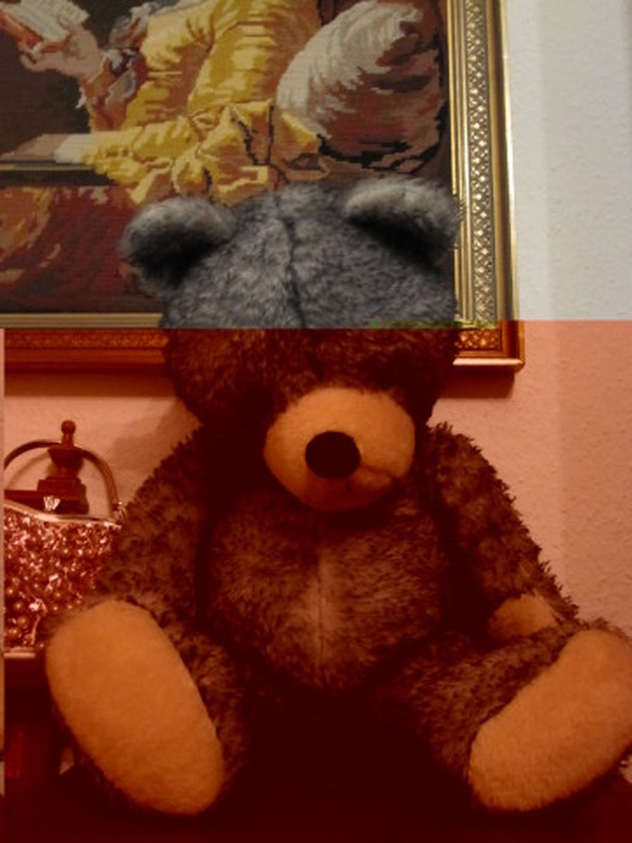 Sain tämän nallen 7-vuotiaana 60-luvun lopussa. Halusin ison nallen, melkein itseni kokoisen, mutta kotikaupunkimme kaupoista ei sellaista löytynyt. Niinpä lähdimme nallenhakumatkalle Joensuuhun, josta tämä löytyi. Nalle on seurannut minua kaikkialle, ja hän asuu nyt Keski-Euroopassa. Nalle on vielä täysin ehjä, äänimekanismikin toimii. Kukaan muu ei ole koskaan saanut leikkiä sillä, eivät edes omat lapseni.