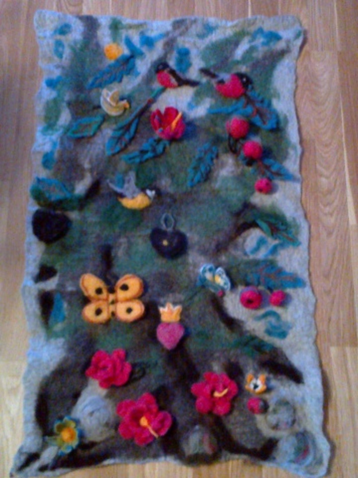 Lukijoiden kuvat: Wau, mitä käsitöitä! Non sine numine 12.4.2013 klo 15:36 Elämäni puu. Huovutettu pohja, johon kuivaneulattu eri tapahtumia kuvaavia luonnon kuvioita.