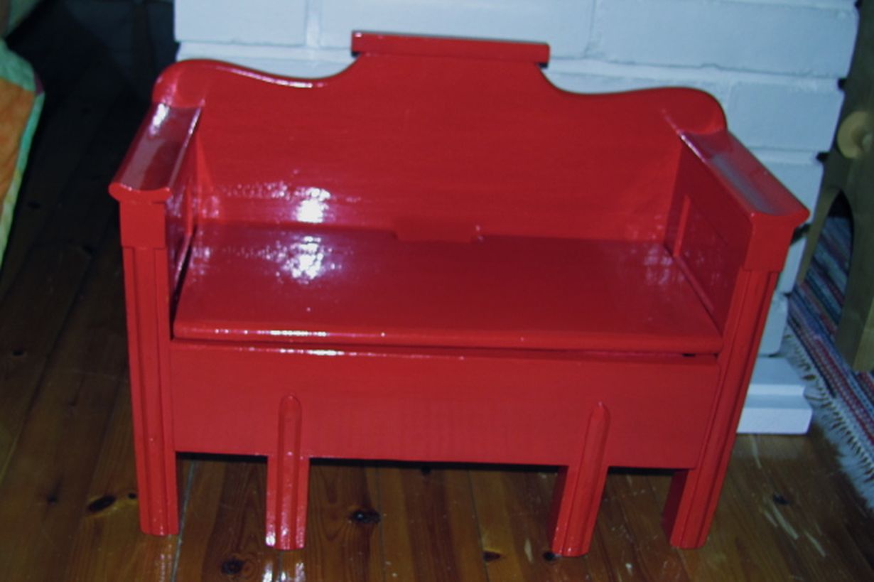 Olin muutaman vuoden ikäinen, kun kummisetäni Janne tuli kotiini kylään kainalossa itse tehty nuken sänky. Tällä lahjalla on ikää noin 75 vuotta. Tämä sänky on sivusta vedettävä kahdelle pienelle nukelle tarkoitettu vuode. Tällä ovat leikkineet jo kolmen sukupolven tytöt. Kaunis ja arvokas muisto kummisedästä.