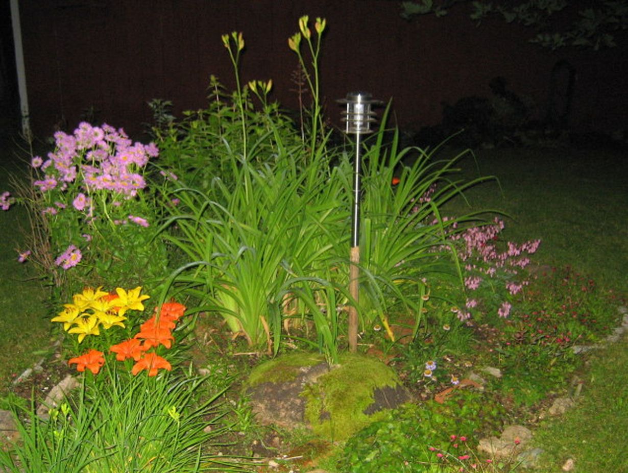 Keskiyöllä otettu kuva keskikesän kukkapenkistä