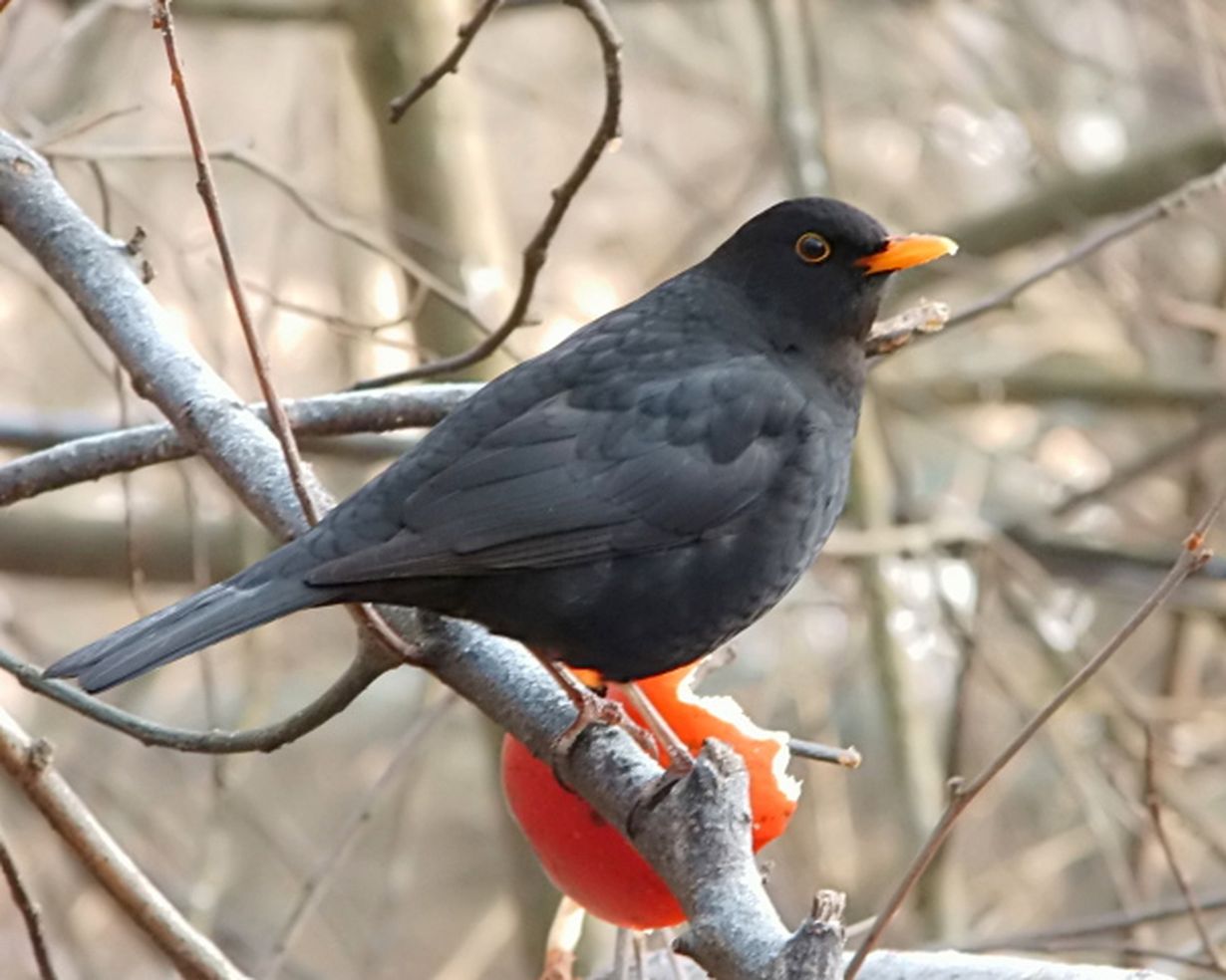 Lintulauta Omena-ateria 2.3.2014 klo 13:11 Mustarastas monen muun linnun tavoin nokkii mielellään omenaa.