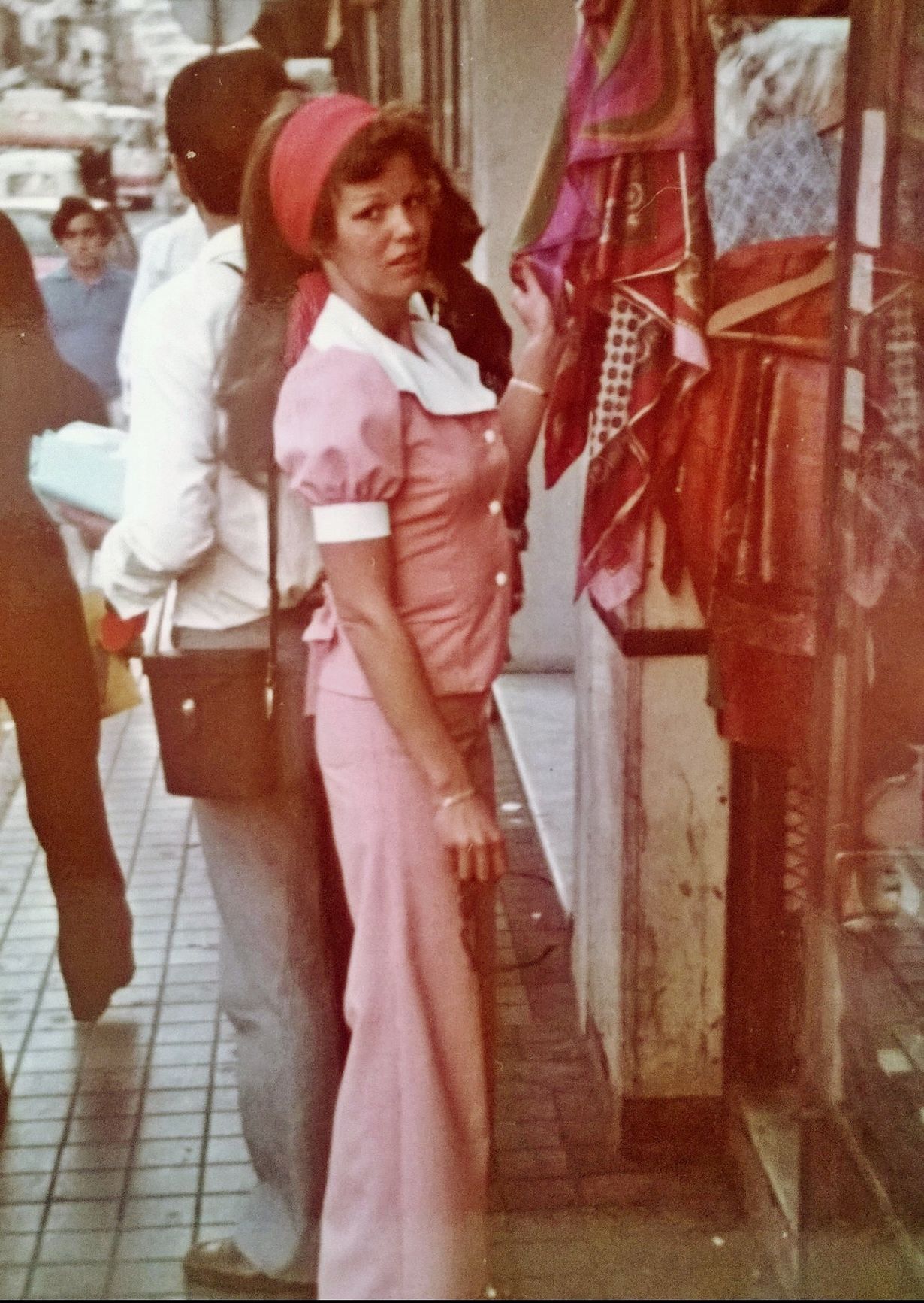 Las Palmas! Sinne suuntasivat kaikki. Kuumuudesta huolimatta "Kanekalooni" päässä, huivi. Ompelijalla teetetty housupuku leveine lahkeineen, jalassa paksupohjaiset kultaiset korkkarit. Silmissä kajaali-ilmettä vaikka toisille jakaa. Ei muuta kuin huiviostoksille ja tinkaamaan. Toinen turisti oli varustautunut kiikarilla kuten tapana oli.