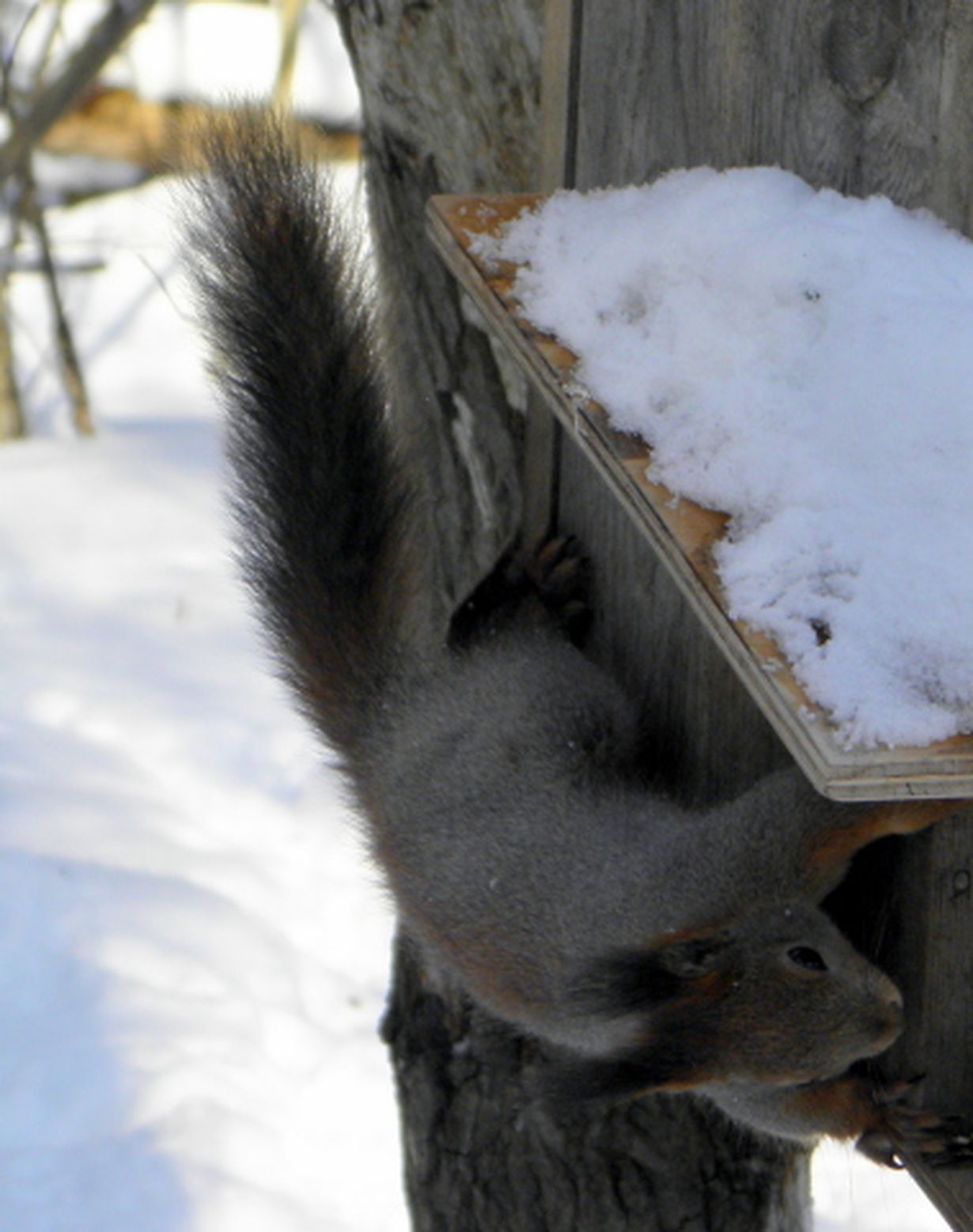 Lintulauta Orava aterialla 29.2.2012 klo 21:42 Oravat ne venyvät vaikka miten hankalan näköisiin asentoihin