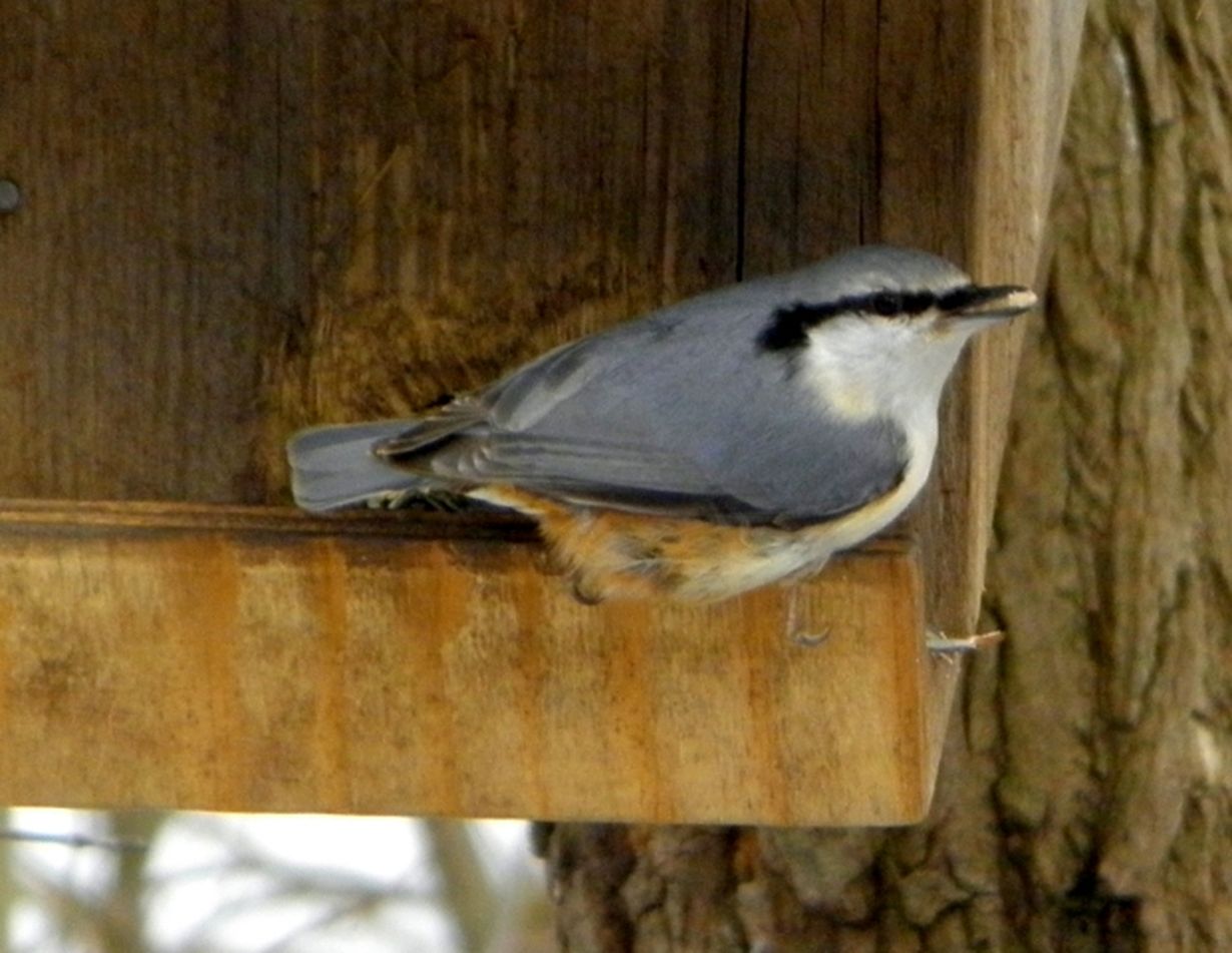 Lintulauta pähkinänakkeli 4.4.2012 klo 14:12 Vähän harvinaisempi lintu, pähkinänakkeli, nauttimassa lintulaudan antimista