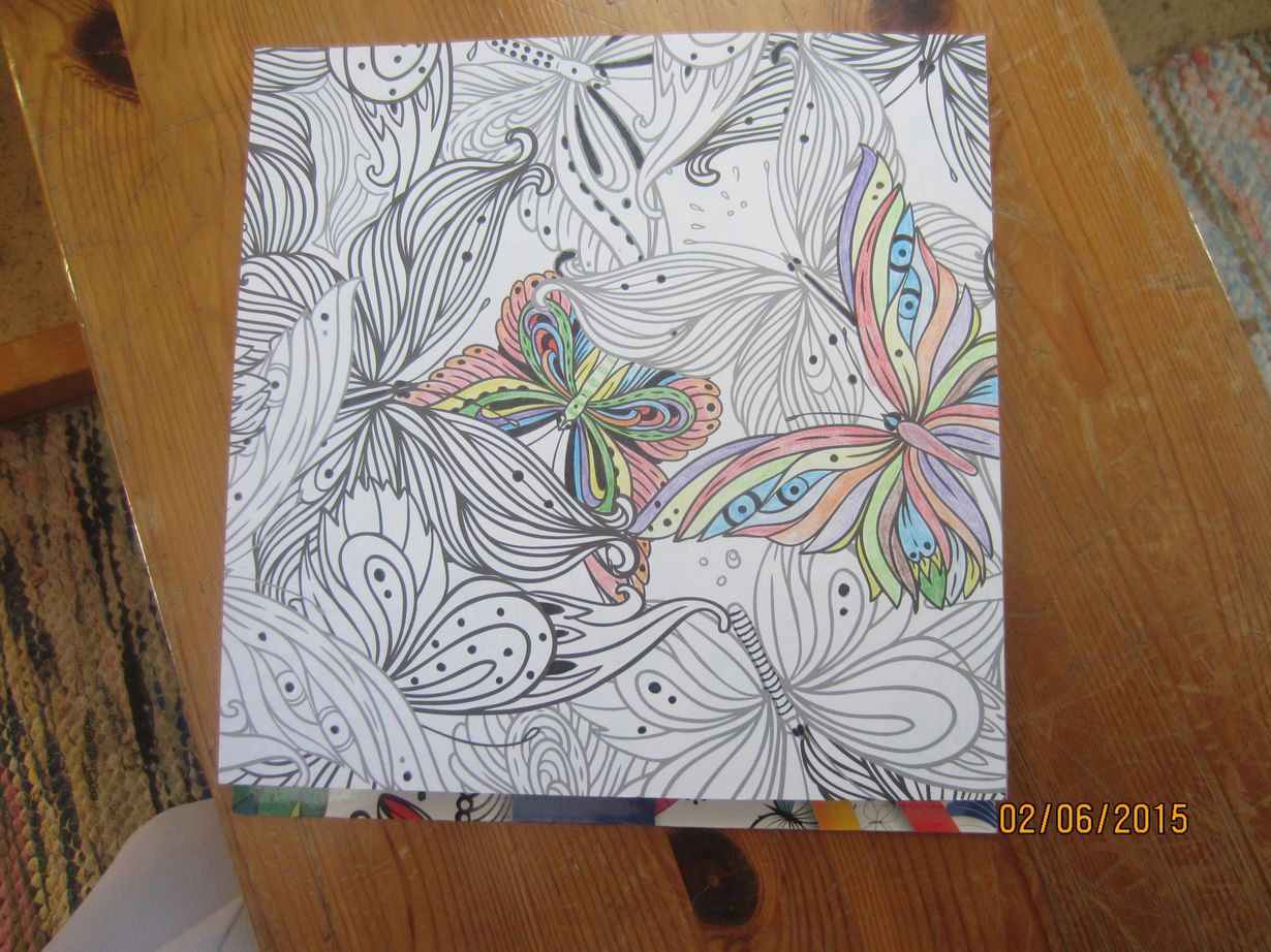 Tästä se lähti. Kampin kirjakaupasta ostin ohikulkumatkalla itselleni värityskirjan. Perhosia väritellessä aika kului kuin siivillä enkä aina muistanut murehtia ihosyöpääni. Nyt perhosia löytyy eteisen ja makuuhuoneen seiniltä ja hyvä niin sillä luonnossa ei juurikaan ole perhosia näkynyt. Melanoomastakin tuli hyviä uutisia.