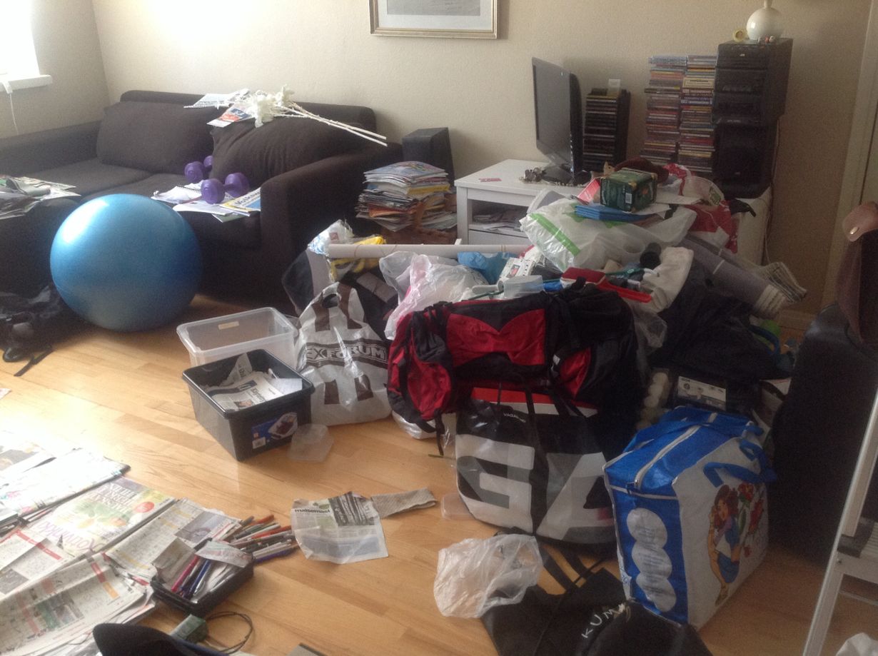 Asunto on pieni, ja vintillä tai kellarissa ei voi tavaroita säilyttää. Eri vuodenaikojen vaatteet, kengät ja liinavaatteet täyttävät ainoan kaapin. Asunto tarvitsee lisää säilytysratkaisuja. Yksin en tavaroitten järjestelystä ja raivauksesta selviä, en tiedä mistä aloittaisin.
