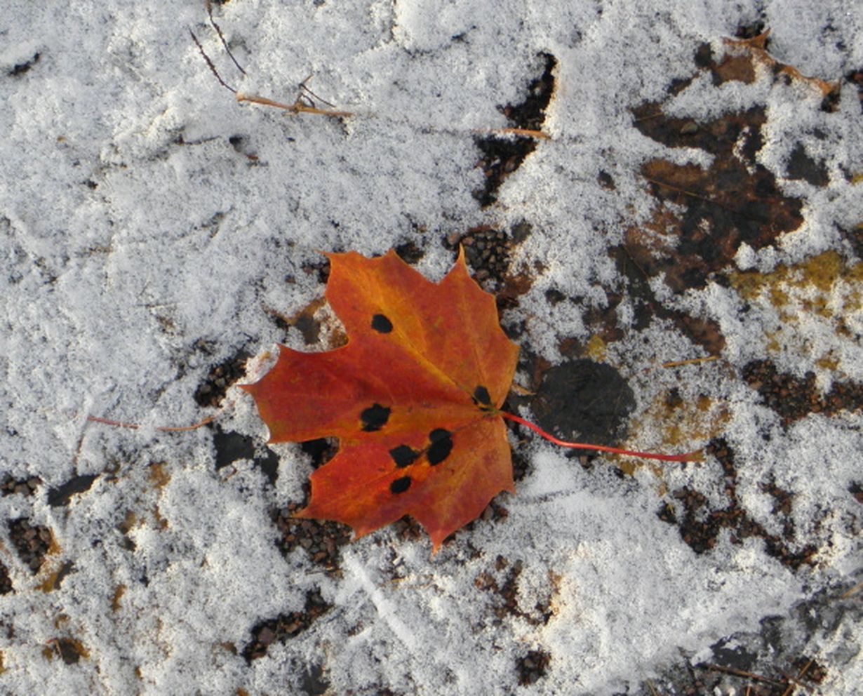 Syksy 2012 Punainen lehti 26.10.2012 klo 22:40 Punainen vaahteran lehti oli asettunut kauniisti ensilumelle.