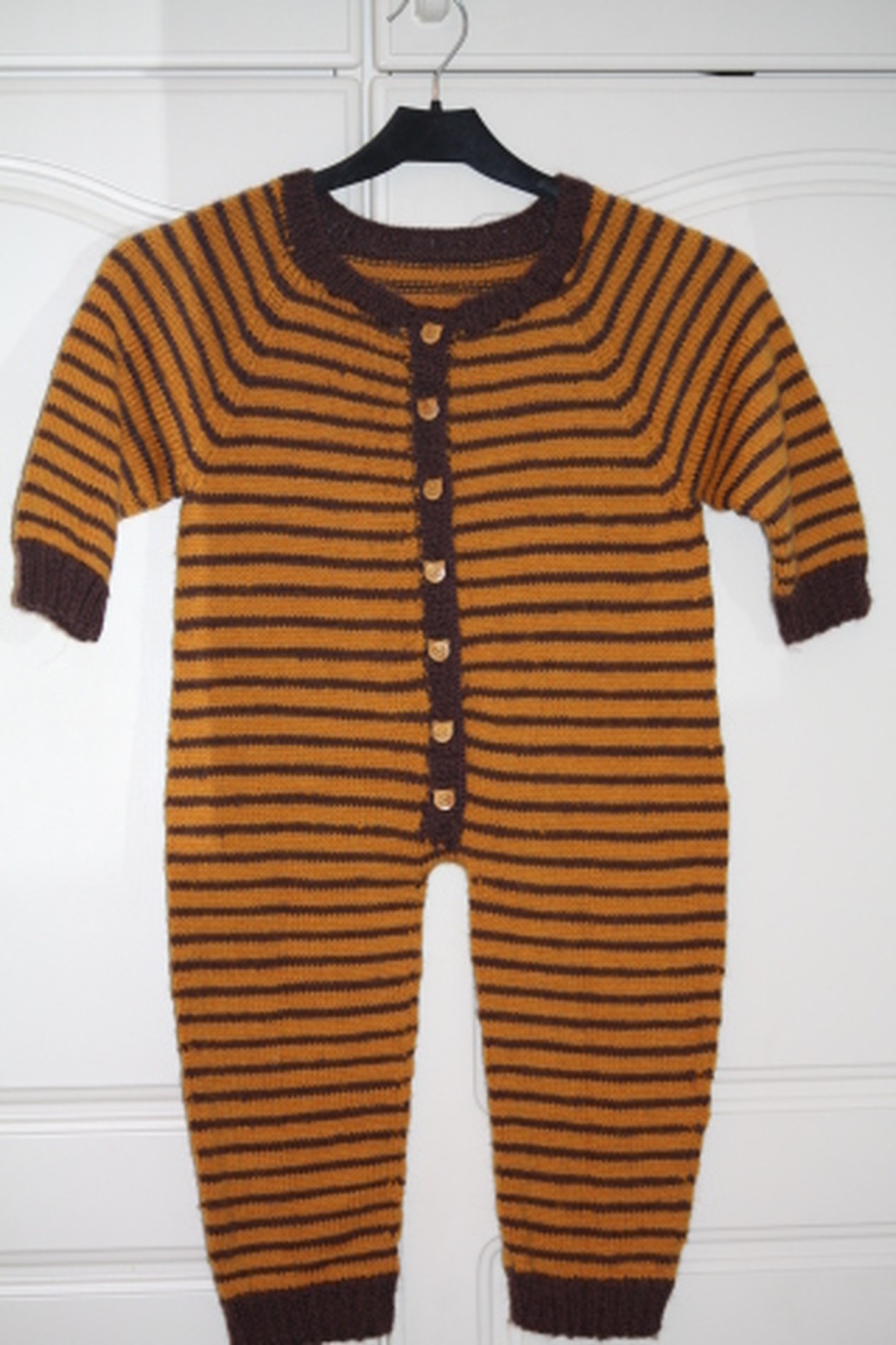 Kudoin omalle lapsenlapselleni retroväreillä villahaalarin, johon laitoin