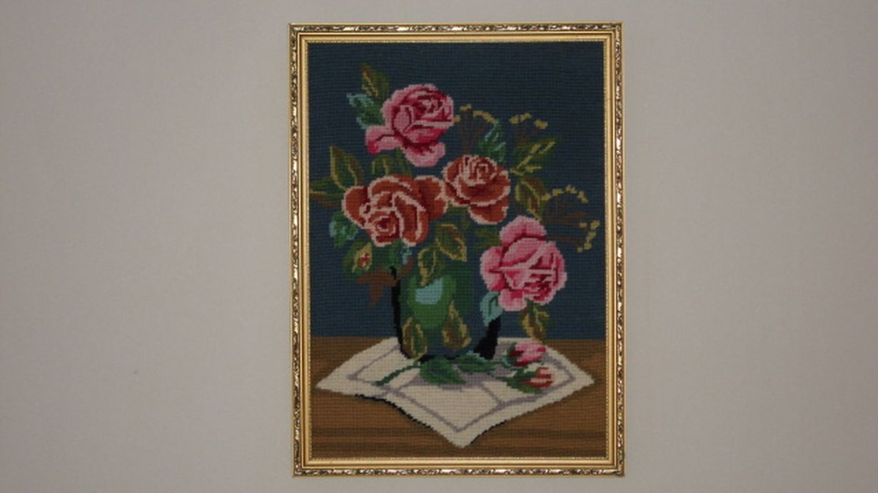 Lukijoiden kuvat: Wau, mitä käsitöitä! Ruusut maljakossa -taulu 28.9.2011 klo 17:58 Petit point -pistoilla tehty.