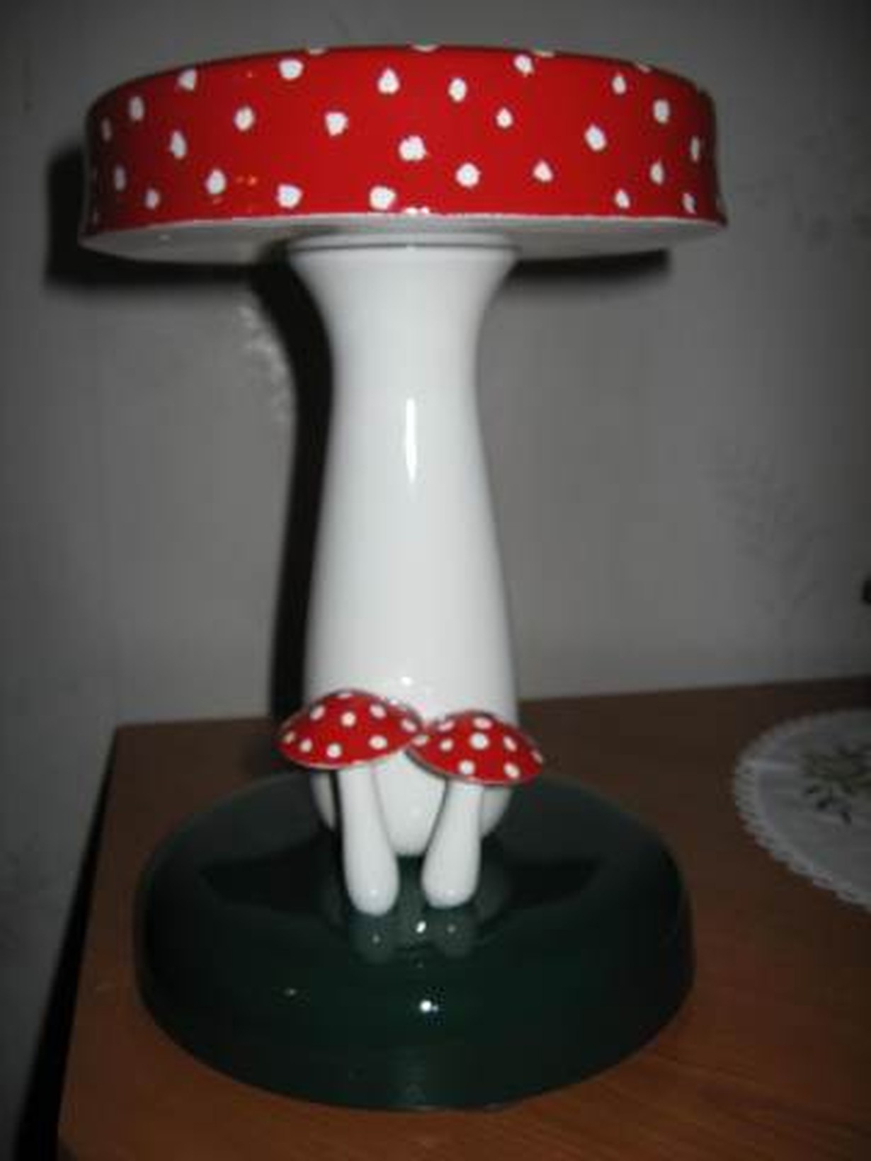 Lukijoiden kuvat: Wau, mitä käsitöitä! Sieni tuoli 30.9.2011 klo 10:14 Koivu puusta sorvaamalla tehty ja maalattu tukeva lasten istuin