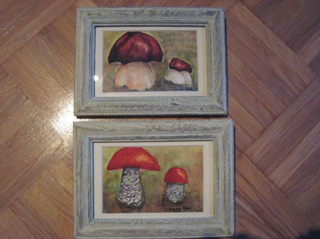 Lukijoiden kuvat: Wau, mitä käsitöitä! Sieniä sateella 22.9.2012 klo 0:36 näyttelyä varten maalatut sienikuvat