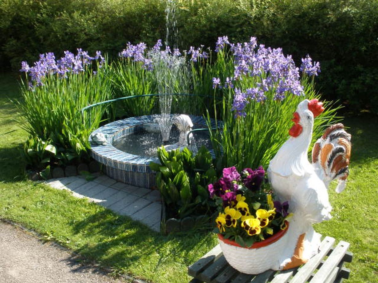 Minun salainen puutarhani suihku allas pihallamme 1.7.2011 klo 18:36 Altaan ympärillä kukkivat siniset iirikset kuva otettu 22.6 2011