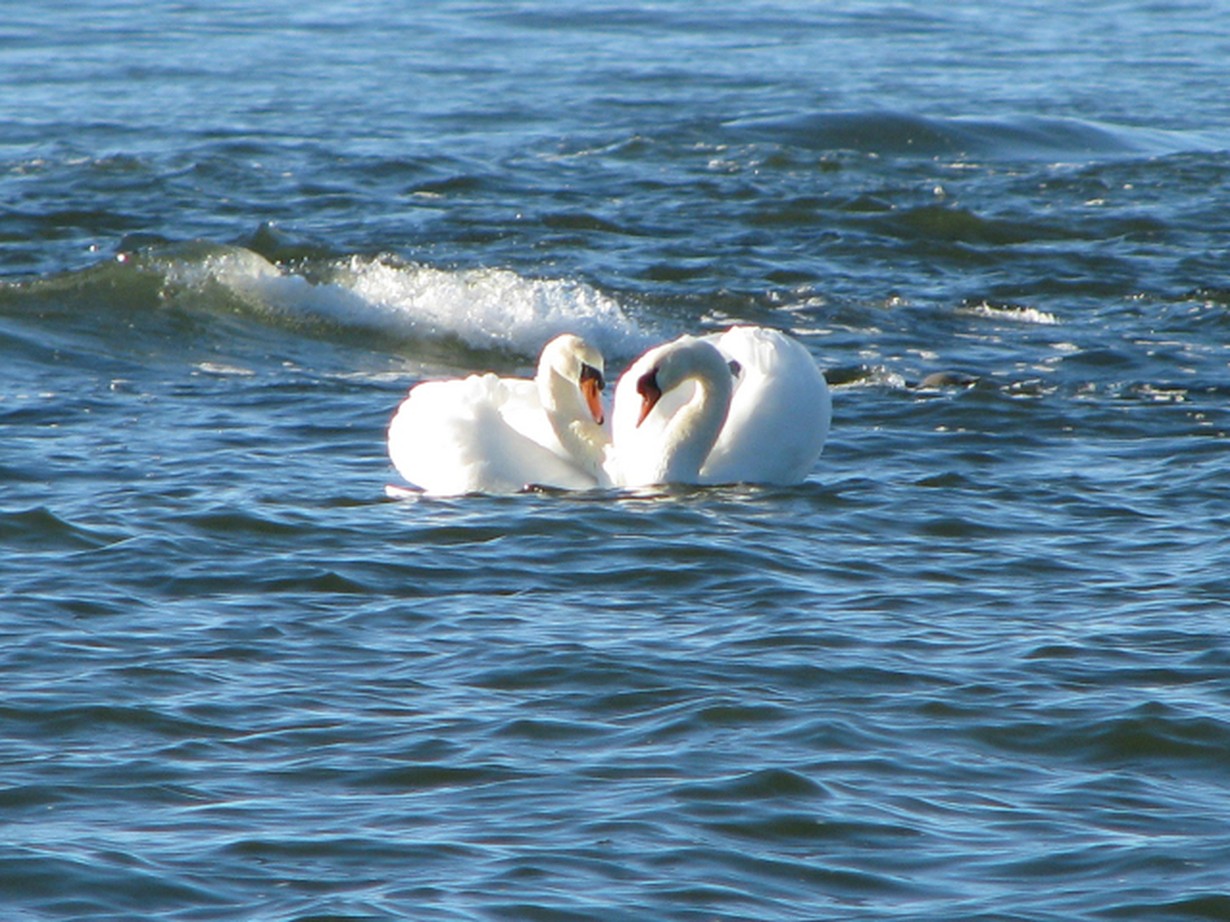 Kohtaamisia luonnossa "Sydämen asialla" 17.8.2011 klo 14:37 Ilmiselvästi umpirakastunut joutsenpari uiskentelemassa Mäntyluodon edustalla. "Sydämen asialla".