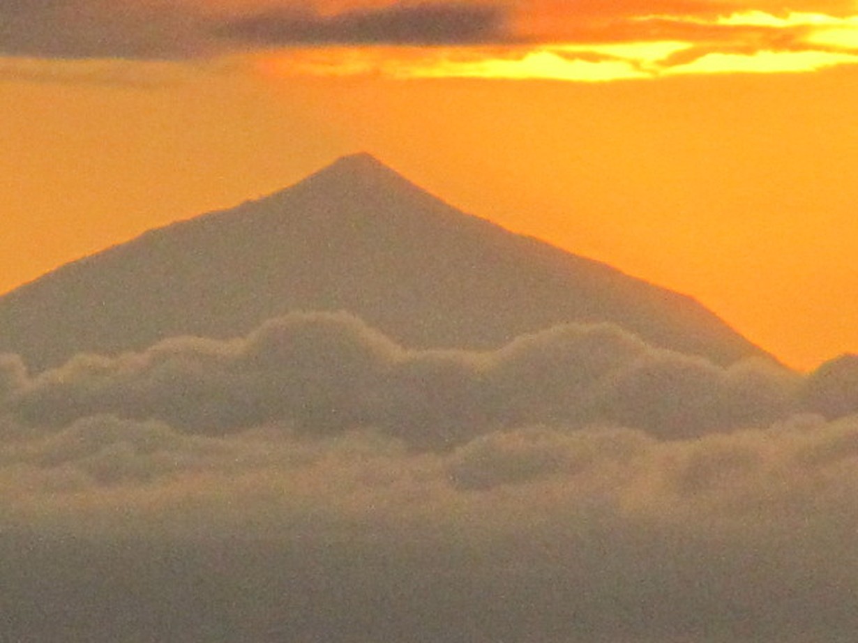 Odotimme milloin tulivuori Teiden huippu näkyisi saarellemme ja tulihan se sieltä näkyviin kuvattavaksi. Upealta se näyttää näin rauhallisessa olotilassaan.