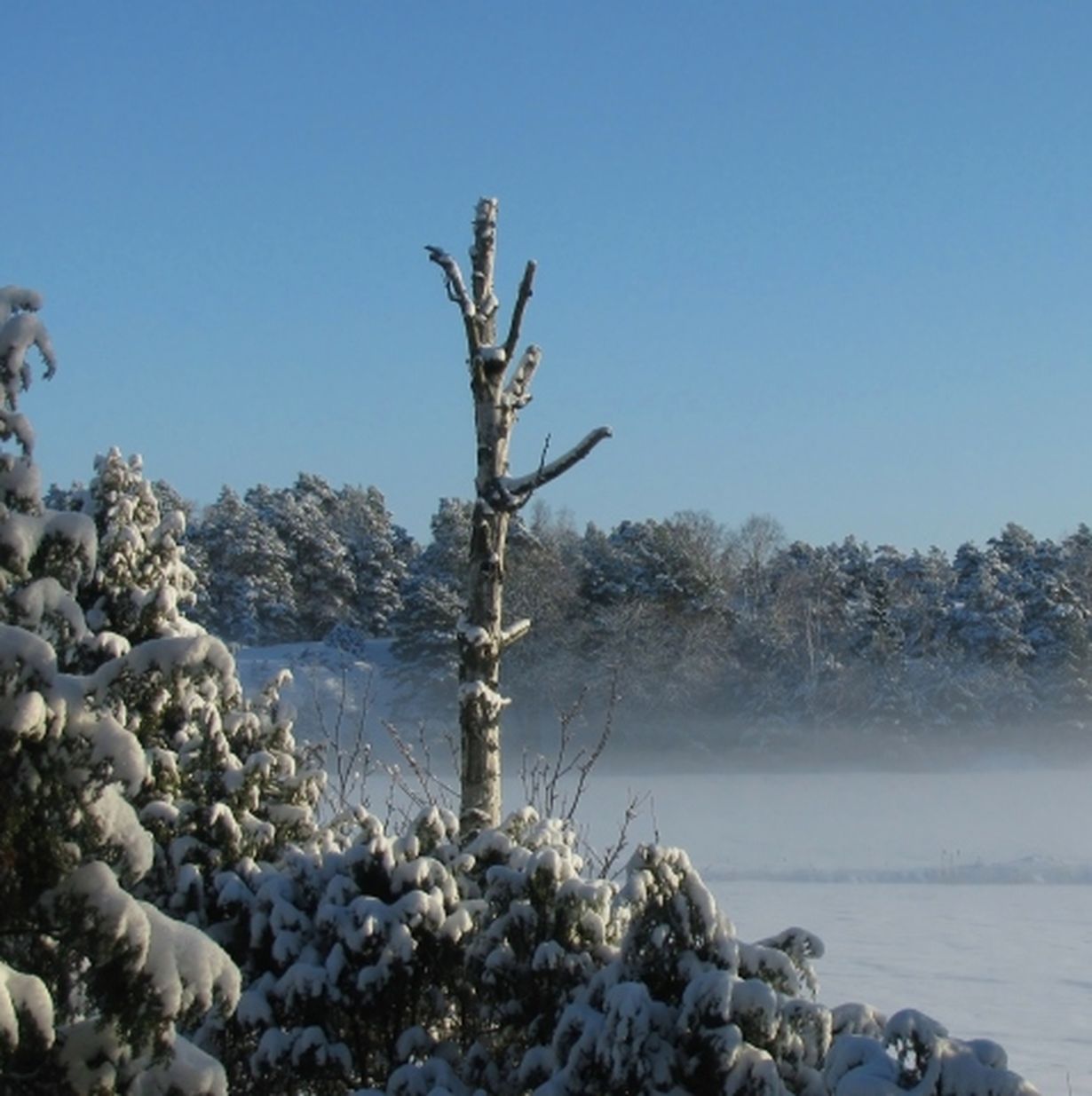 Pakkaspäivä ja usvaa peltoaukealla