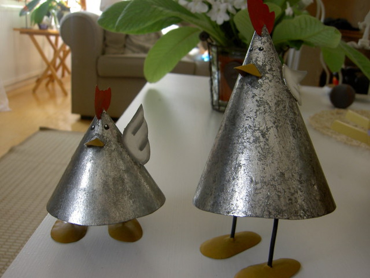 Olen kovasti mieltynyt näihin peltisiin, vieterijalkaisiin pääsiäistipuihin.