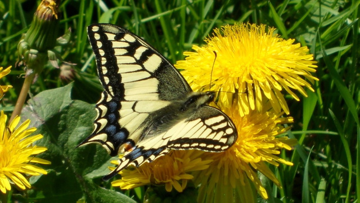 Ritariperhonen viihtyi voikukissa.