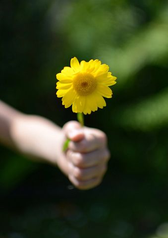 pikkuinen käsi ja keltainen kukka
