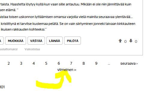Tuorein viesti päivittyy listan loppuun. Tuoreimpiin ja viimeisimpiin viesteihin pääset kiinni rullaamalla (rullaati rullaa) sivua alas, alas, alas ja klikkaamalla kohtaa viimeinen.
